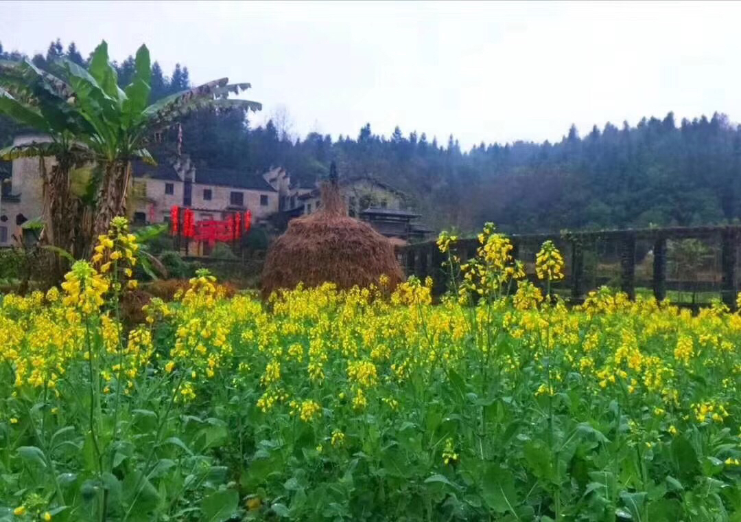,朵朵金黄色的油菜花,掩映着白墙灰瓦的徽派建筑,相信你一定会心醉于这一片浑然天成的自然画卷;