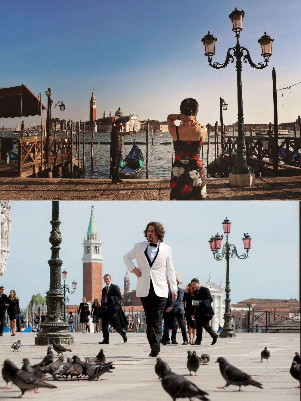 《致命伴侣》威尼斯的宣传片,大家走到圣马可广场就能喂鸽子,顺带打卡了。