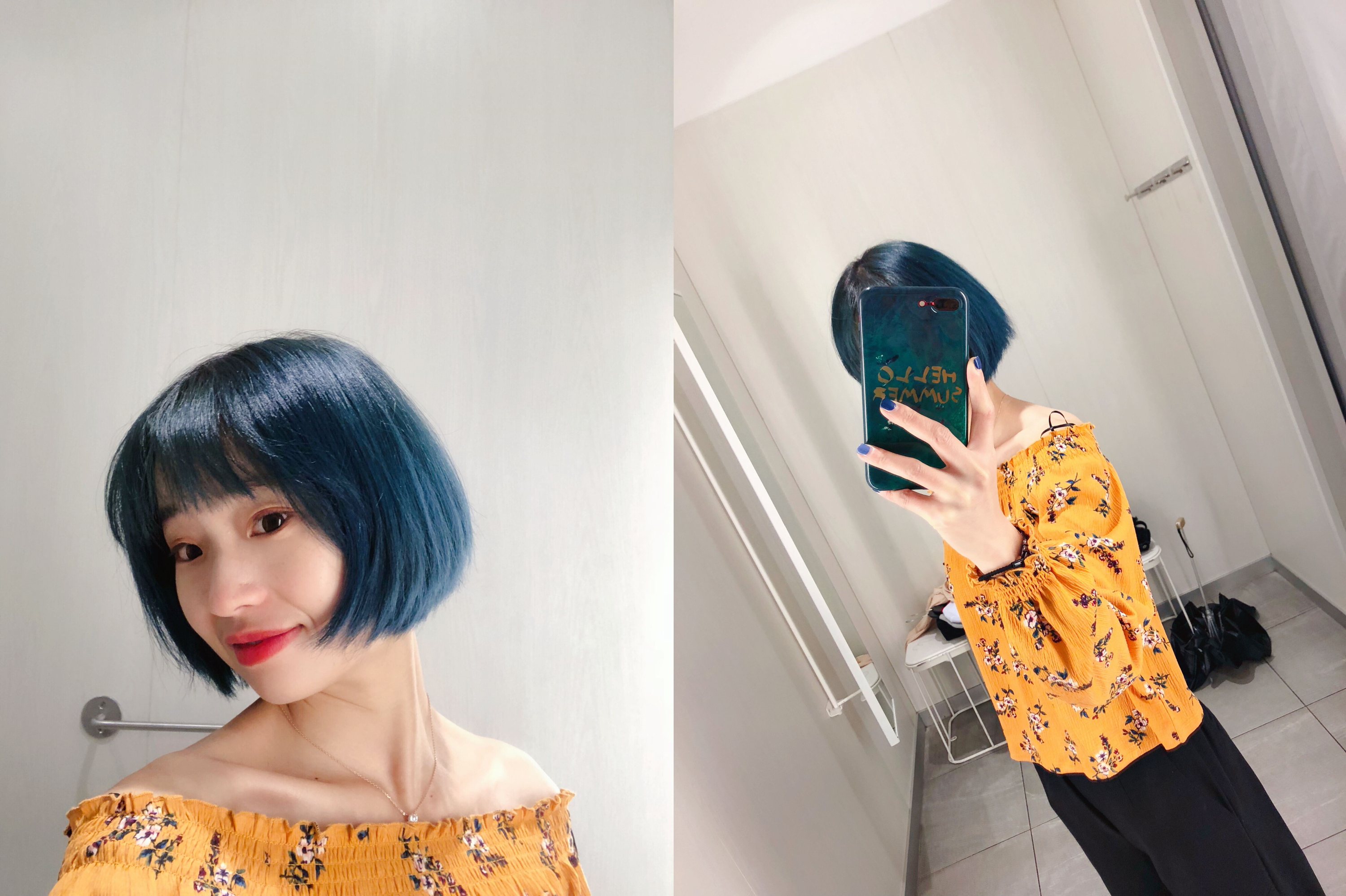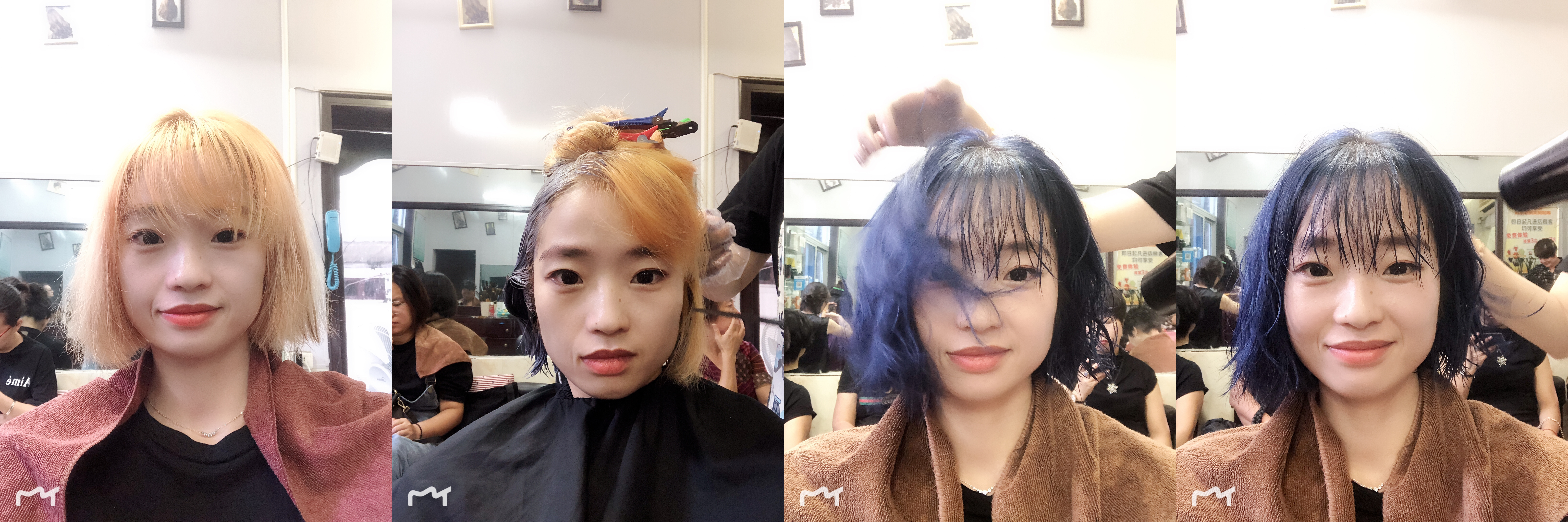 今年真的特别流行黑蓝色。我当然不能落后于潮流,扬言要染了一头全蓝色。染发顺序跟一般染浅色发系是一样的 是先把整头漂染成金色的,然后再上蓝色的。