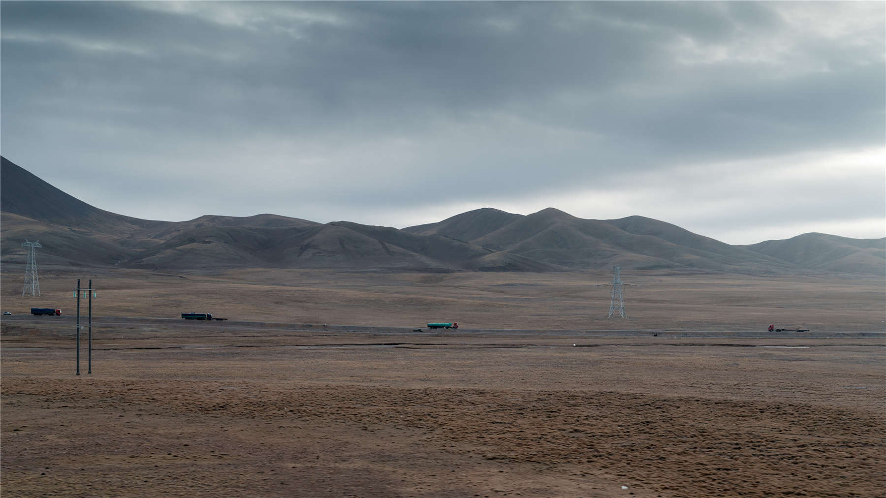 青藏铁路的一旁,就算青藏公路,偶遇进出的车辆,心里向他们说一声你好。