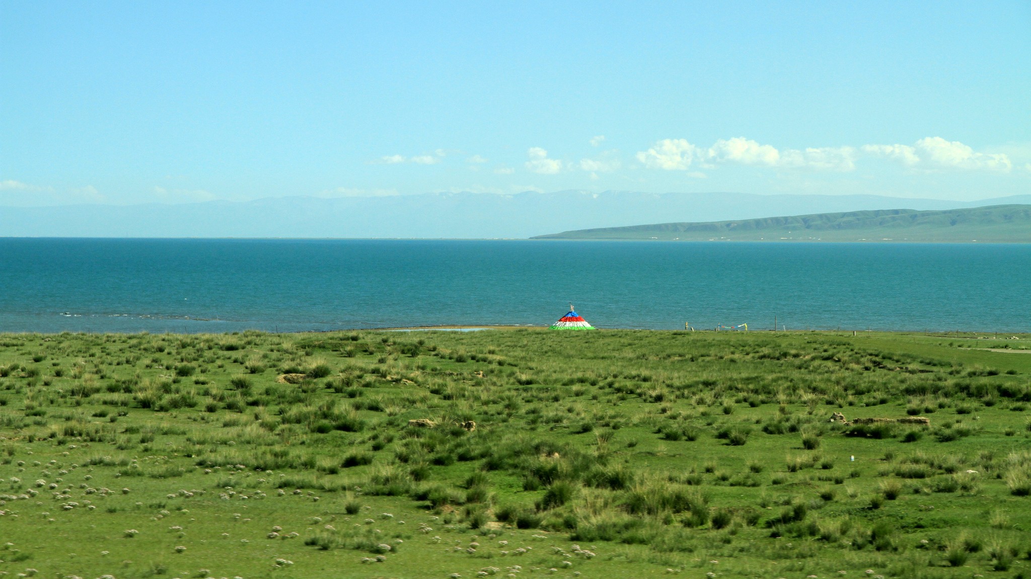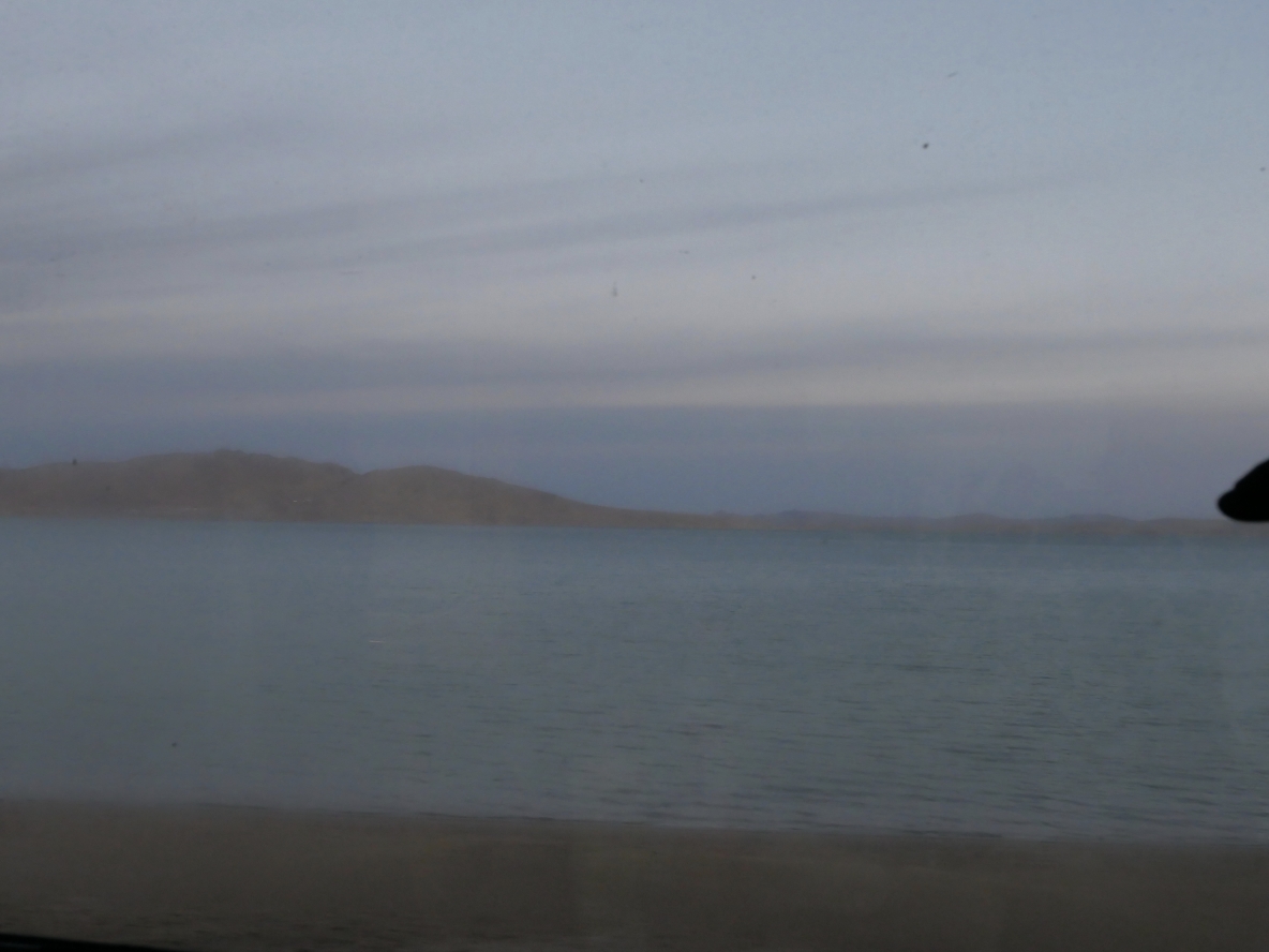 出 西宁 站1个多小时,看到美丽的 青海湖 ,列车员告诉我们列车会沿着 青海湖 运行很长一段时间。