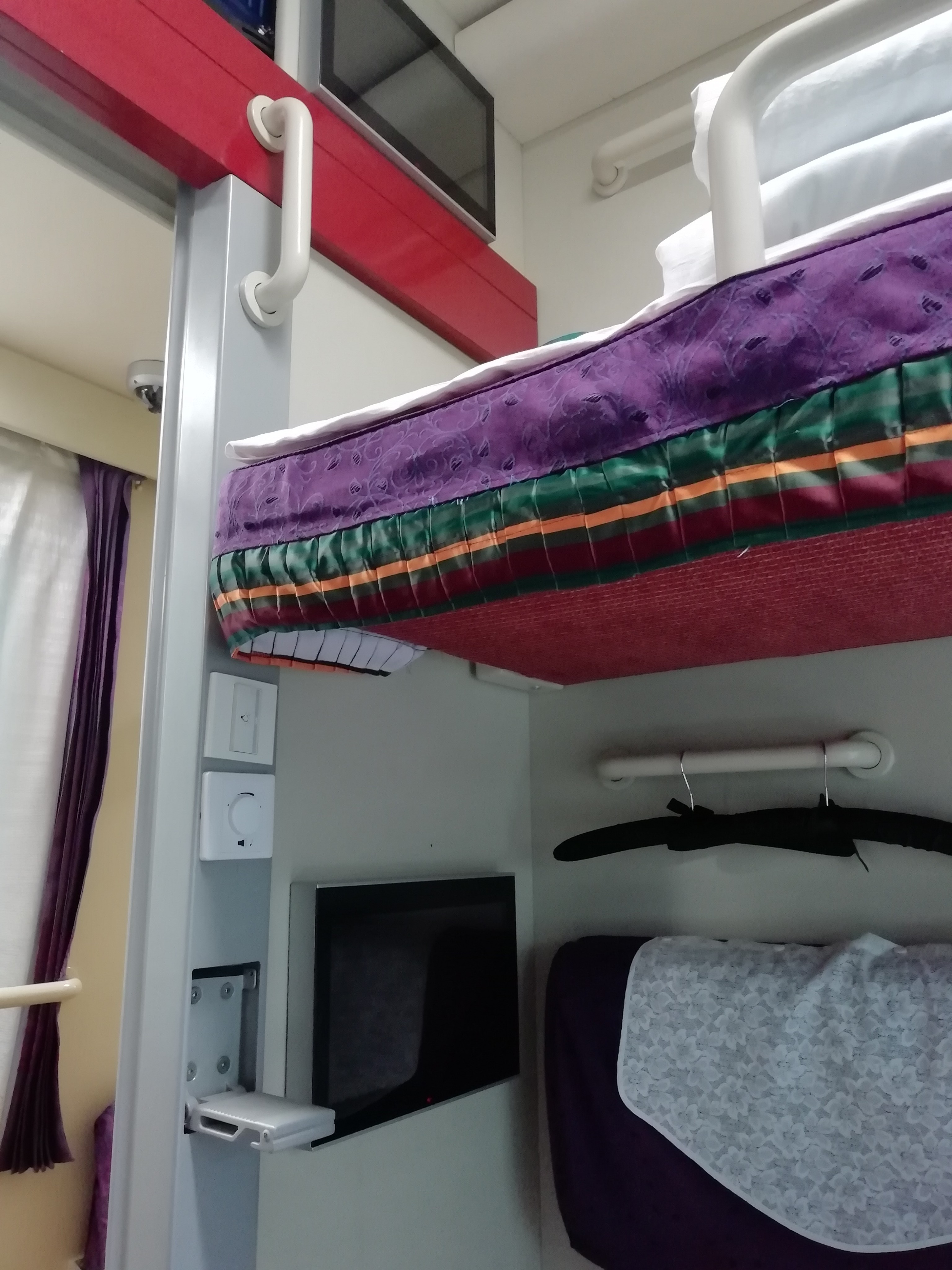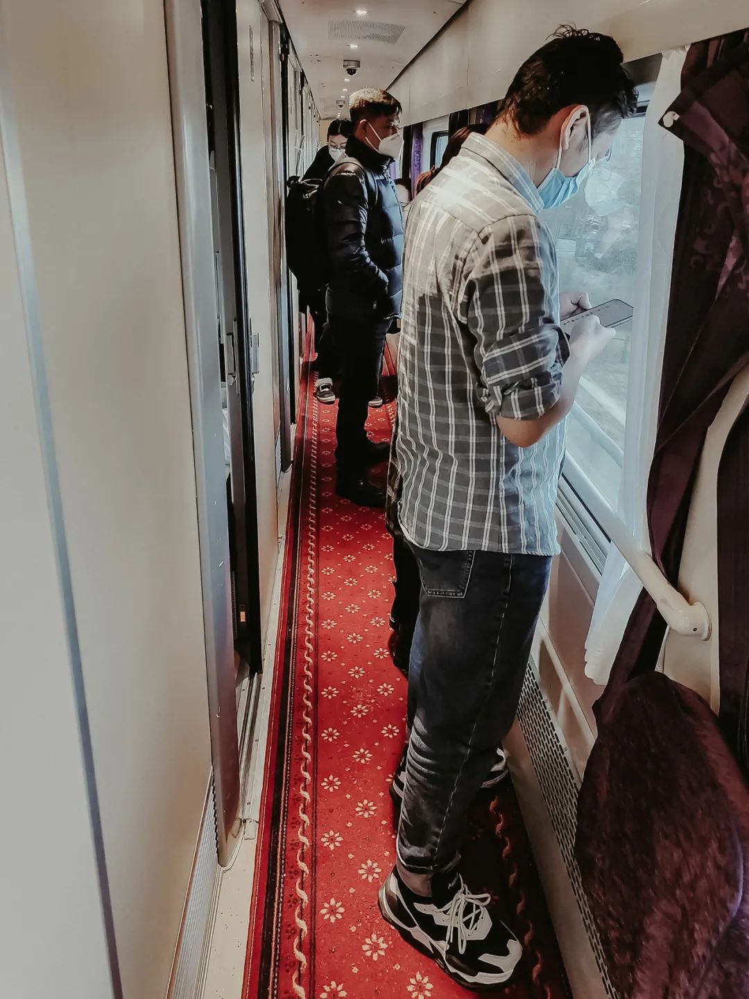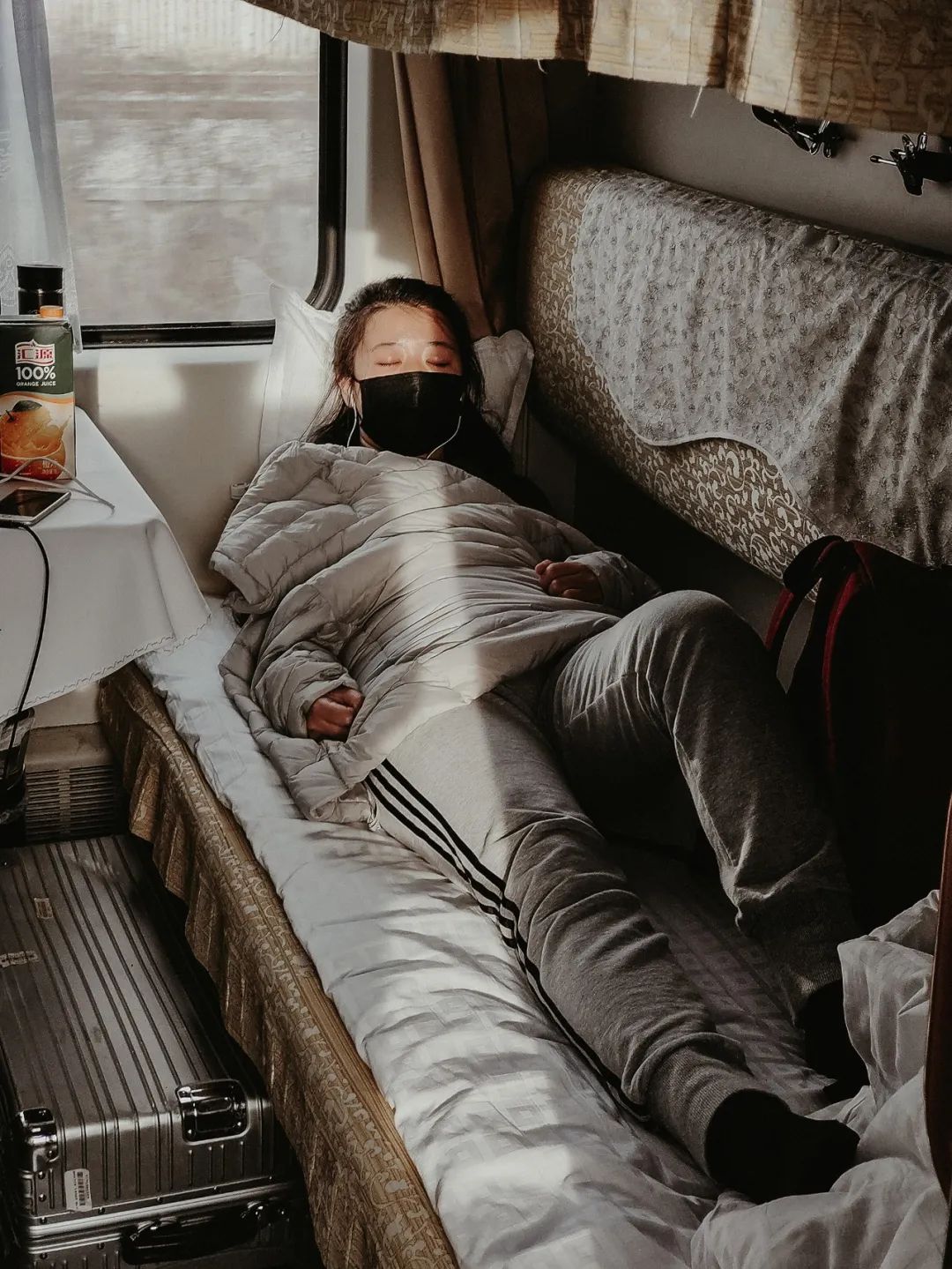 一个比较糟心的点就是,床很窄,上铺空间小,车厢人多。半夜停车又开车,停车又开车,上铺晃得会比较厉害。早上也会很早被吵醒。总之并没有睡眠质量可言。我妈睡眠更加浅,几乎整晚没休息。这就是要走最美铁路线的代价哈哈哈。