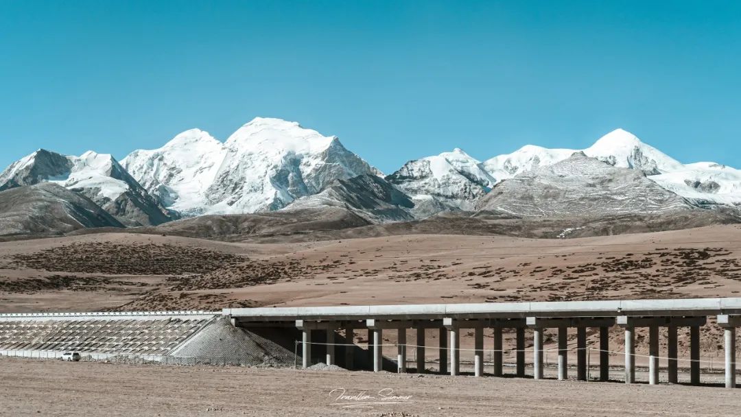 大本营等高的唐古拉山娅口5230米处通过,而铁路则从公路以西50多公里处海拔5072米处的唐古拉山跨越,这里既是青藏铁路的最高点,也是世界铁路的高海拔之最。