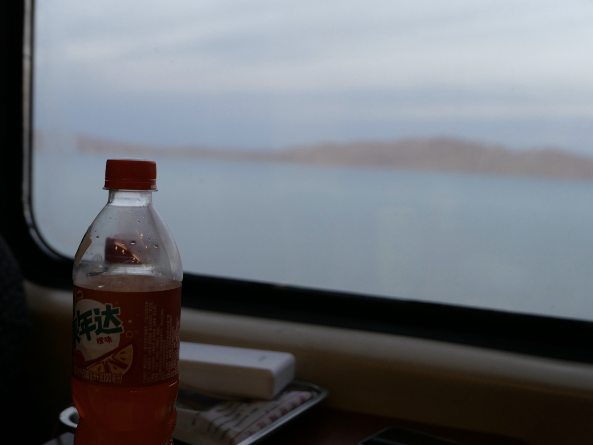 而我依然没有睡意,随处走动,一看海拔刻度表,居然才2小时,就已经到了3355m的高度,看了下地图,定位显示的位置在青海湖旁,却没办法欣赏到青海湖的美景。