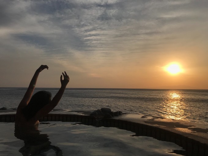 伊豆面向大海的温泉,来这里的都是当地老头老太太,我和虹姐都觉得真是太会享受了呢~