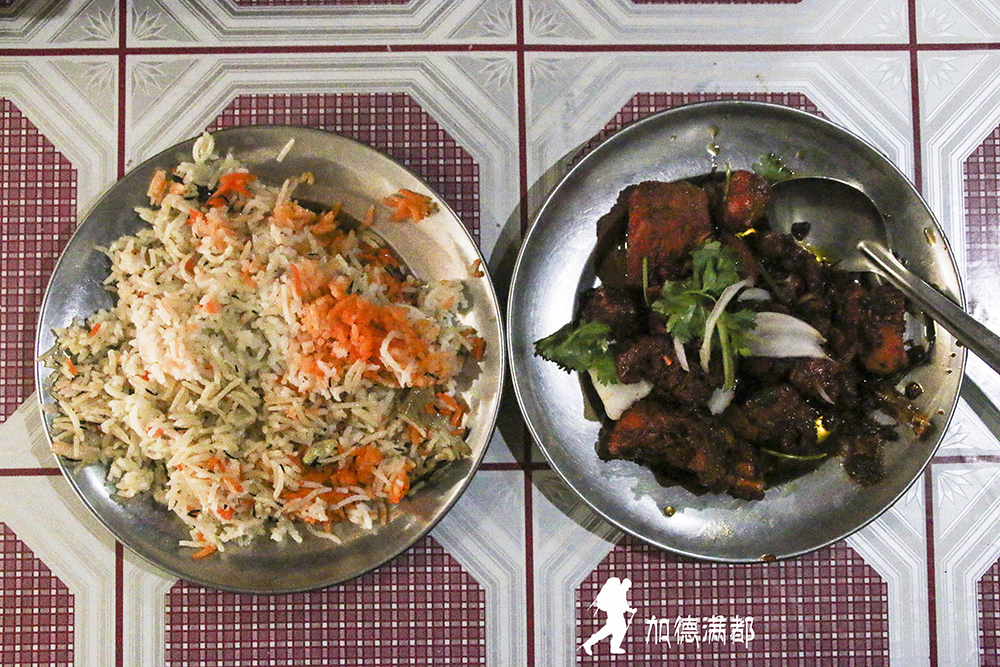 (↑ 在巴基斯坦,去当地人家做客,吃一顿鸡肉黄米饭)