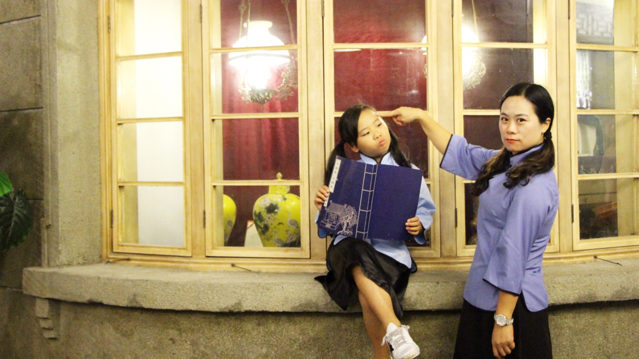 我要求同伴这一家老公去调戏老婆,还得加点儿戏,闺女就是前世的小情儿,不能白捡的,赶紧去把你老情儿扯回来。瞧!十二岁的小姑娘秒懂,O(∩_∩)O哈哈~