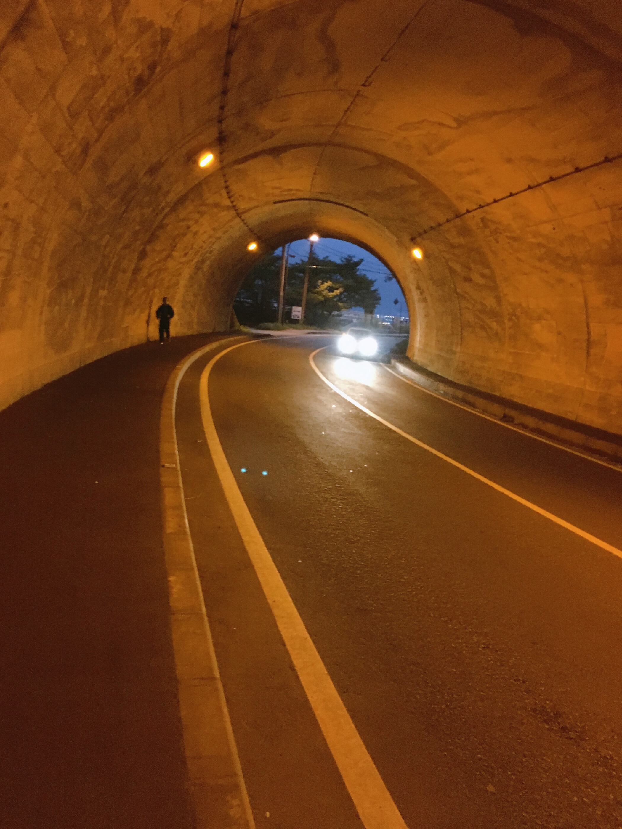 一个人参加夜行。