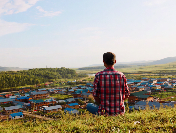 坐在山头看日出照耀整片草原,只有你自己。