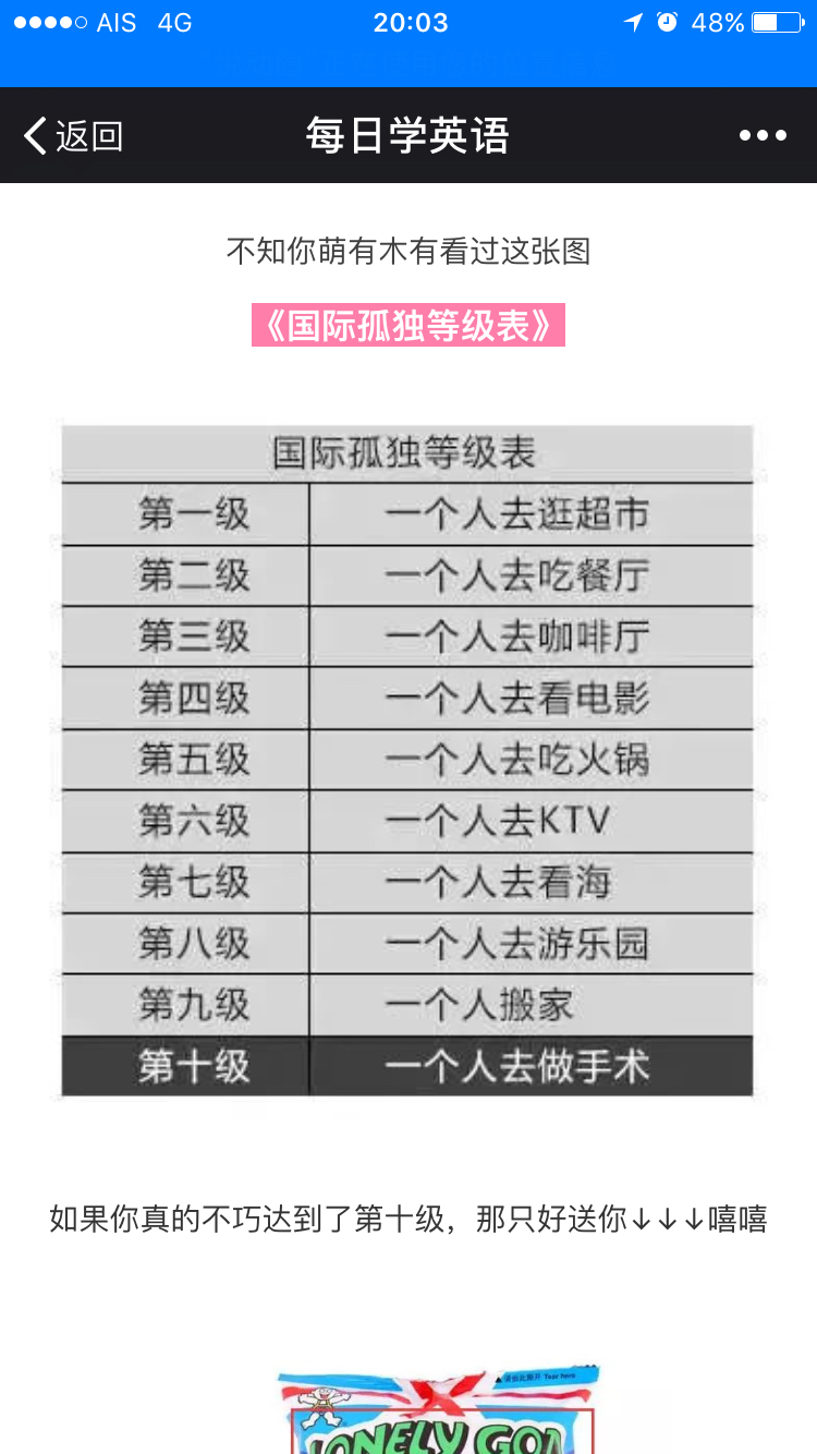 我可以一个人吃饭,一个人上学回家,一个人逛街,一个人唱歌,一个人看电影……只是可不可以在我一个人做这些事情的时候不要让我碰到认识的人。
