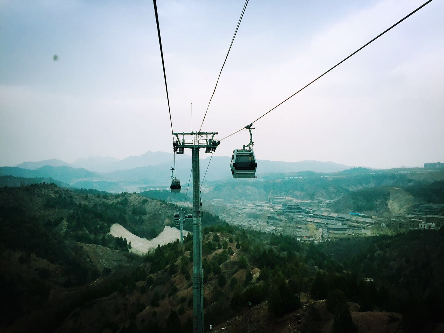 一个人坐缆车。