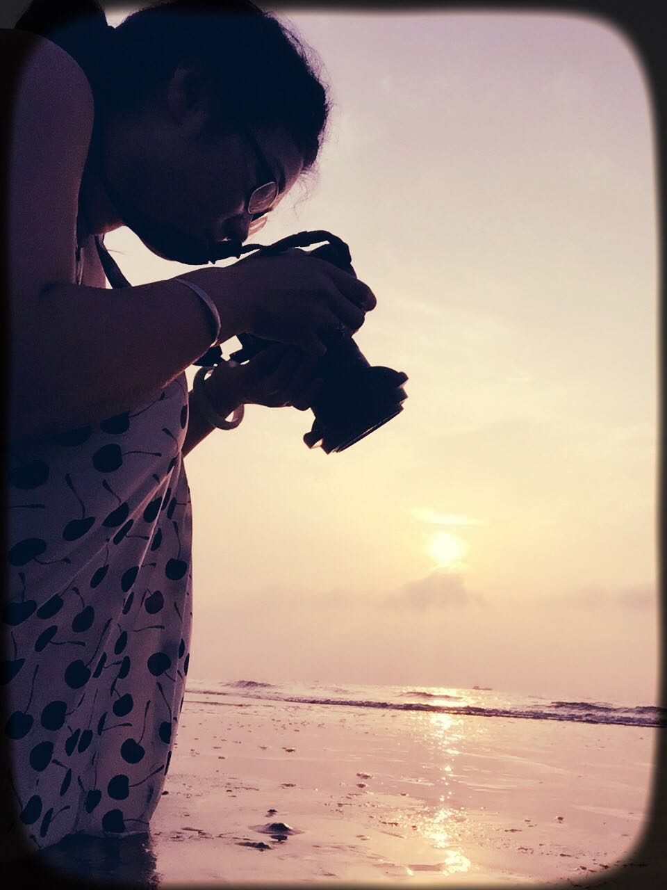 看远处的落日。O(∩_∩)O