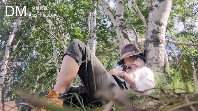一个人躺在白桦林里晒太阳。