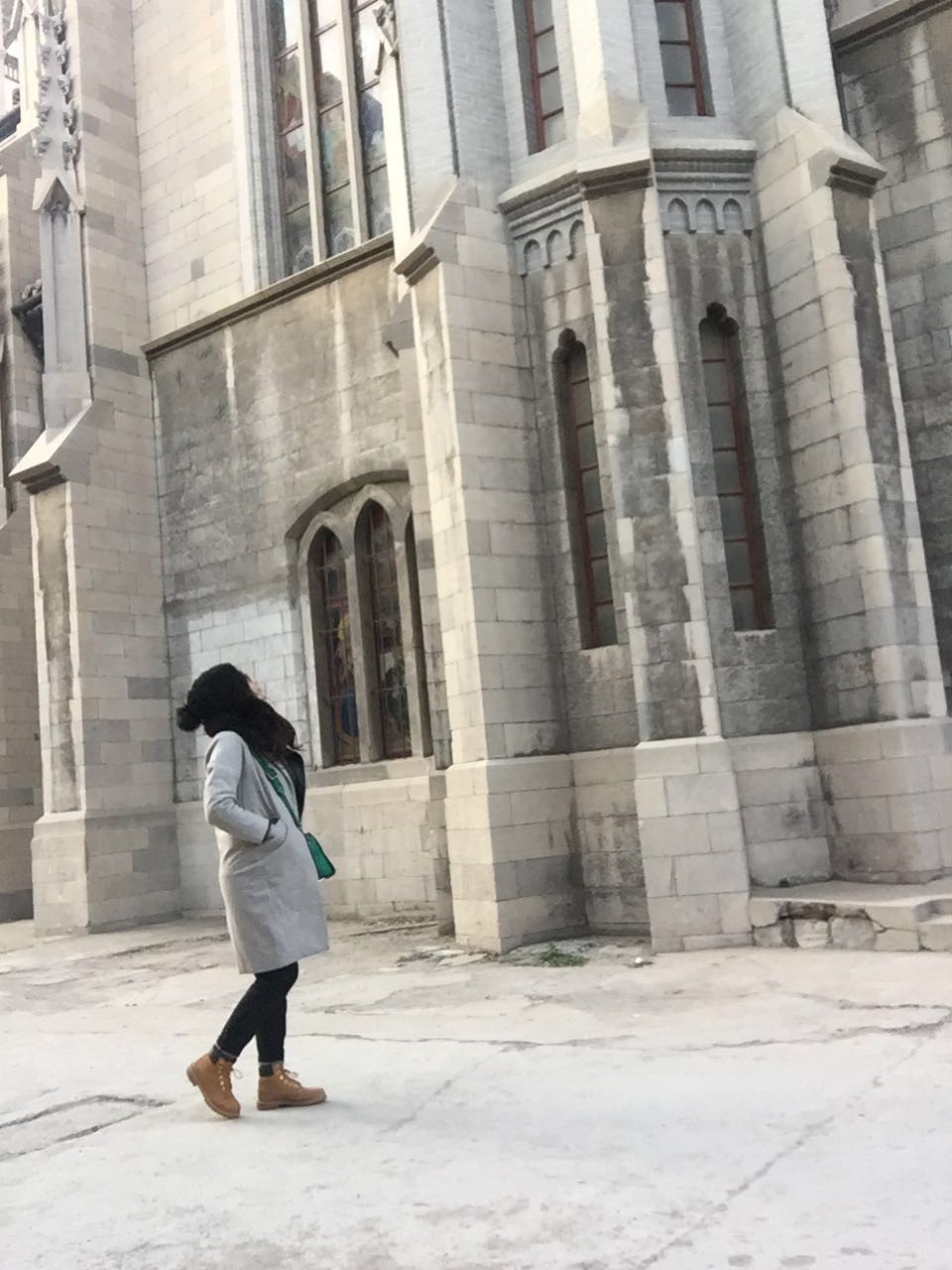 一个人围着教堂来回晃荡。