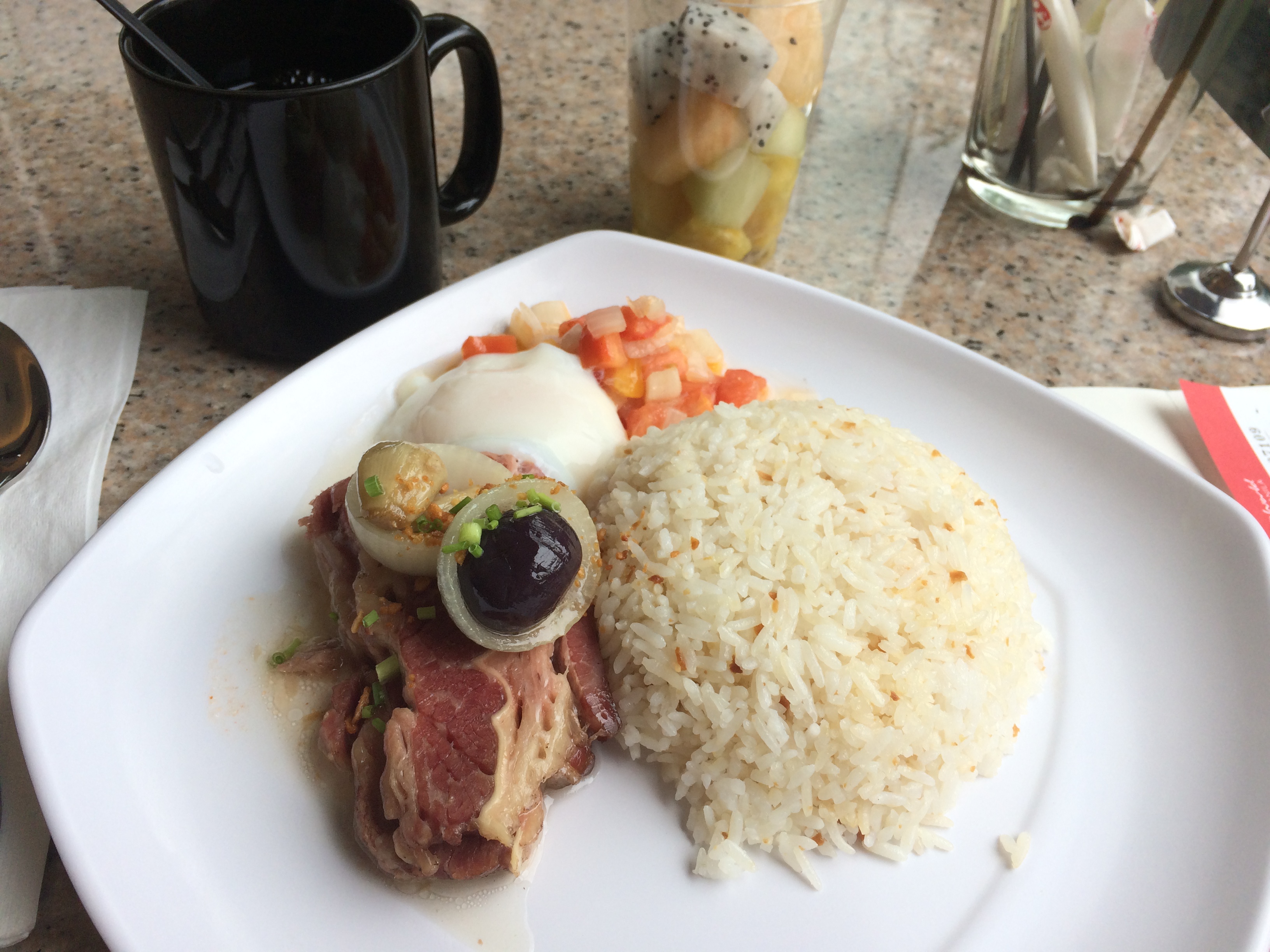 住宿的云顶之星酒店,当时特价入住,一人睡两张床才300,也算合适。然后免费早餐券给了两张。云顶之星的早餐量很大,按照我的饭量基本可以顶午饭吃,安格斯牛肉套餐,还有水果和咖啡,关键味道还很不错,用料也挺良心,好评!!本来想连吃两顿套餐的,结果一顿下去,肚子涨了,只能作罢,另一种早餐券最后被当成了午餐券,去吃了另一个套餐,可惜不然这个,就不晒了,哈哈。