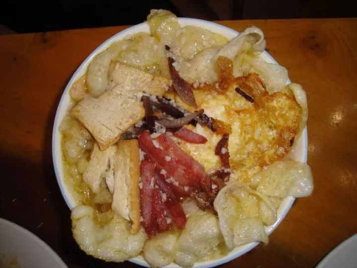 现在的头脑就是一种配料丰富多样得甜食,炸米片顶上盖个荷包蛋,再浇上酒酿,喜欢甜食的朋友不要错过了。
