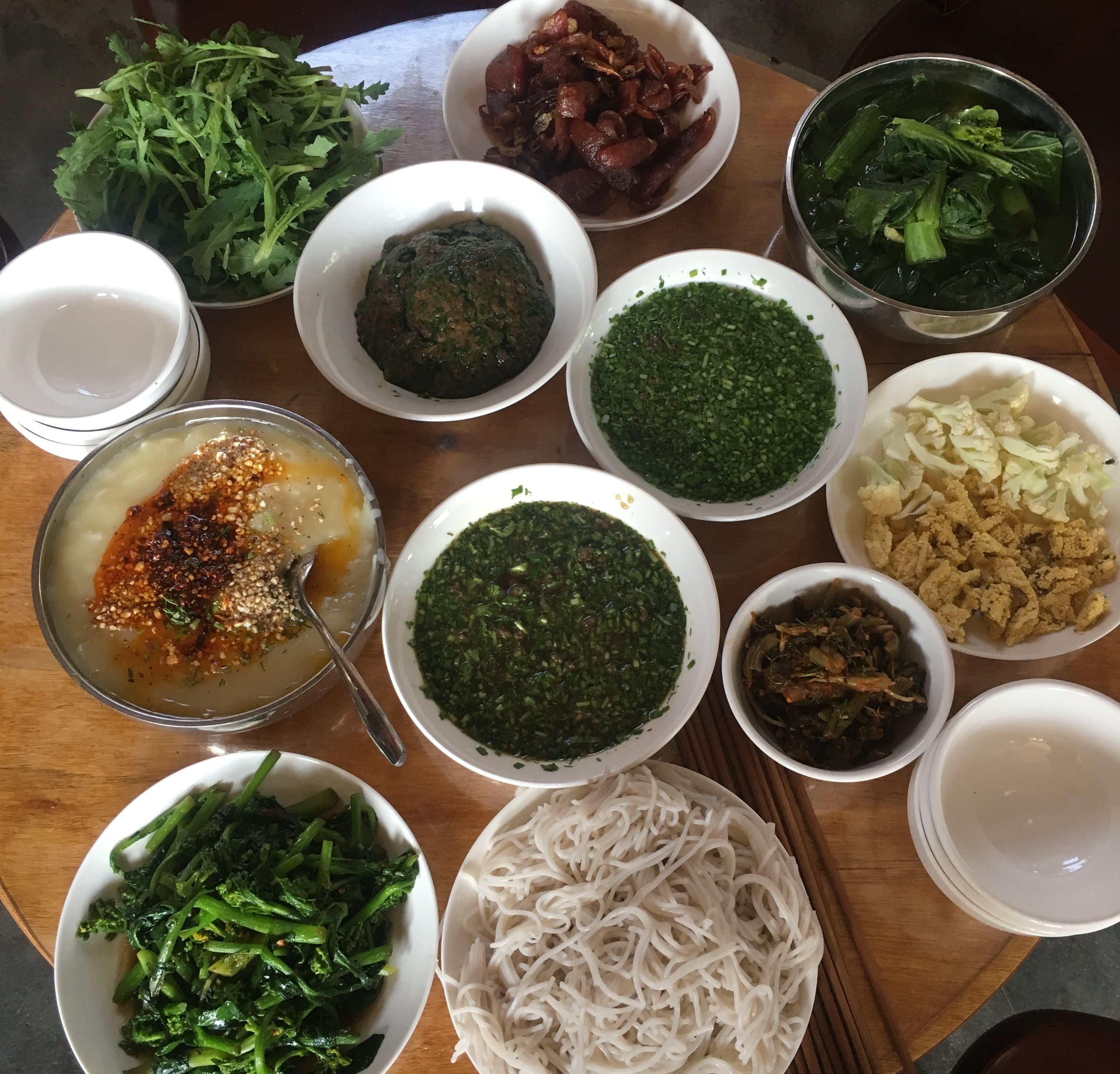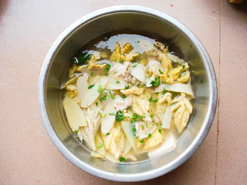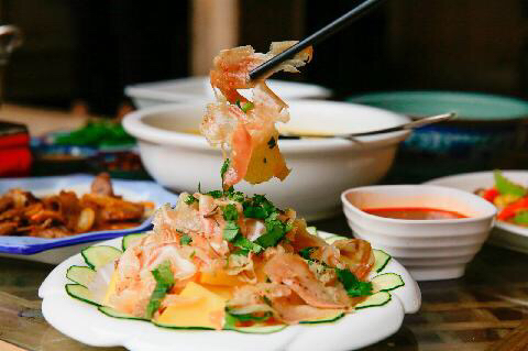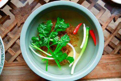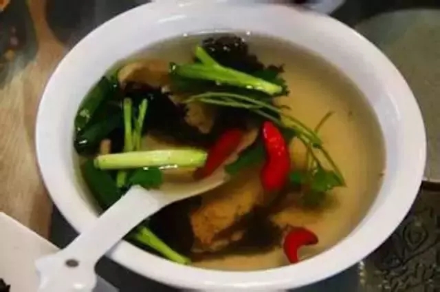 腾冲本地的风味餐馆大都有这道小吃(价格在15~20元左右),通常还会附送一碗干腌菜、姜、小米辣冲成的“青龙过海汤”。