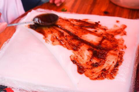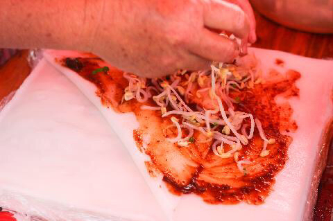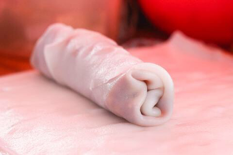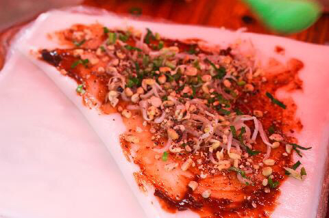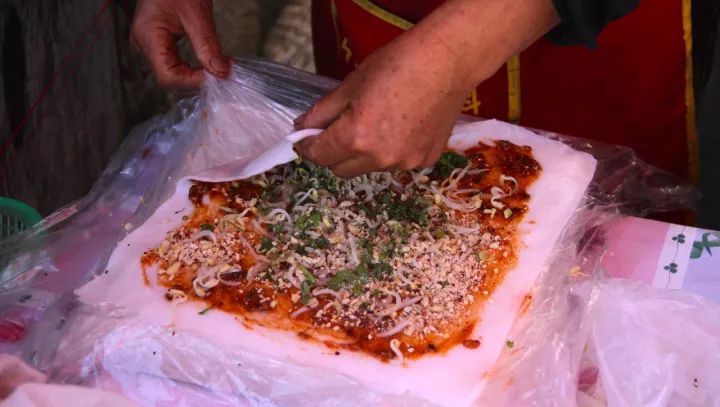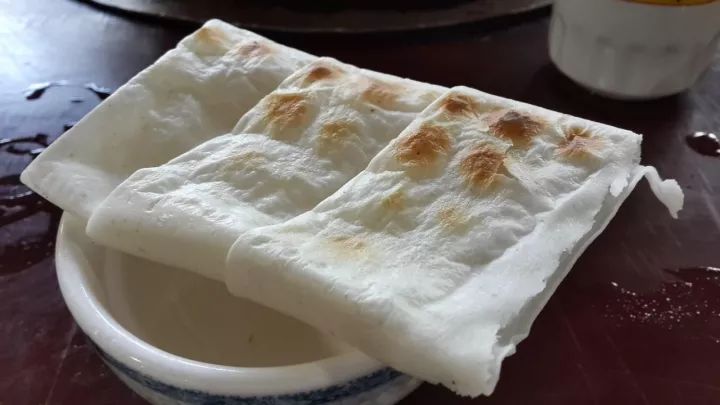 腾冲卷粉外面是一层类似于肠粉样的软米皮,超薄的。
