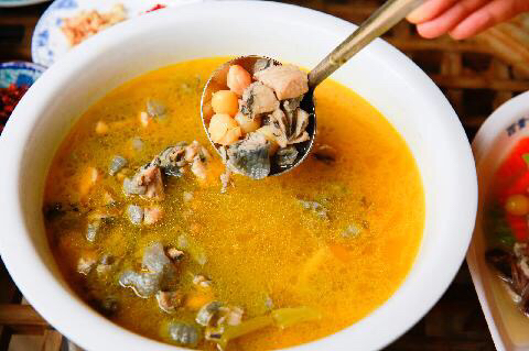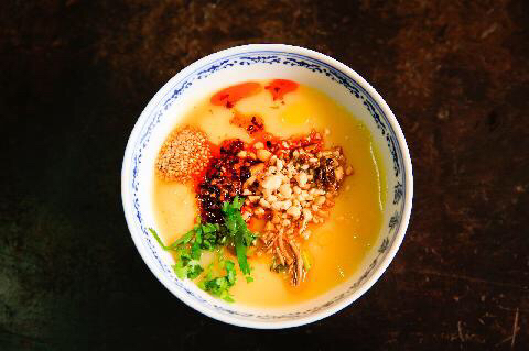 煮吃法是将洗净的棕包米切碎放清汤里煮熟,佐以干腌菜、糊辣椒和捣姜块、葱白、芫荽,其味酸中有苦,苦中回甜。天馬推荐美食小吃