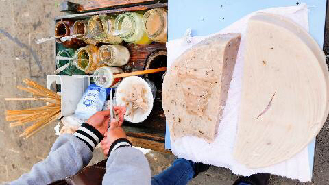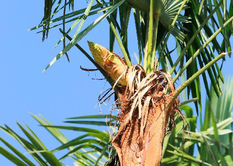 云南腾冲棕包米又称小米,为棕包树上长出的未露头开放的花穗。冬委孕育,初春时节于树上剥去外层棕皮即可取得。