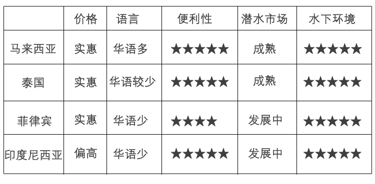 ,菲律宾的巴拉望、杜马盖地,泰国的甲米,巴厘岛的图兰奔都是相当棒的潜水地。