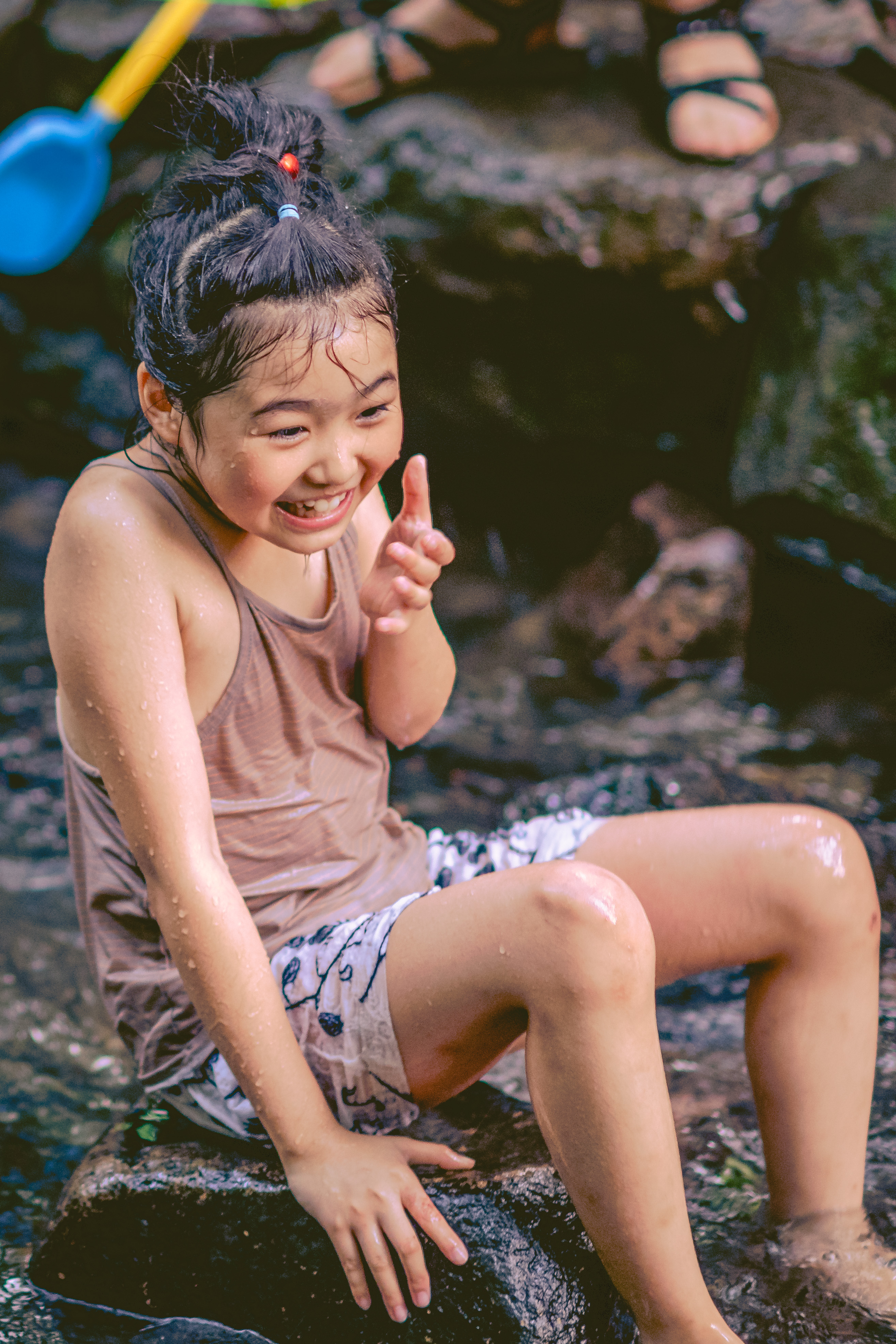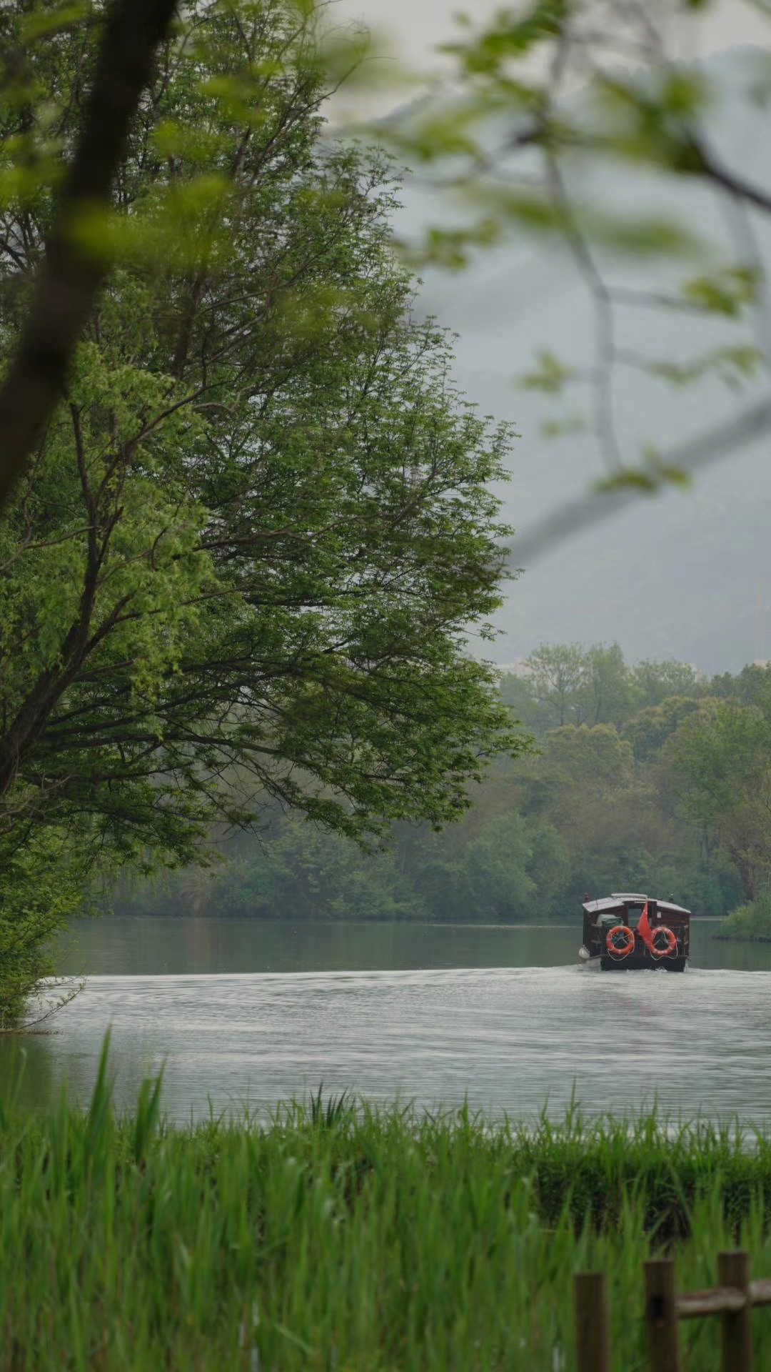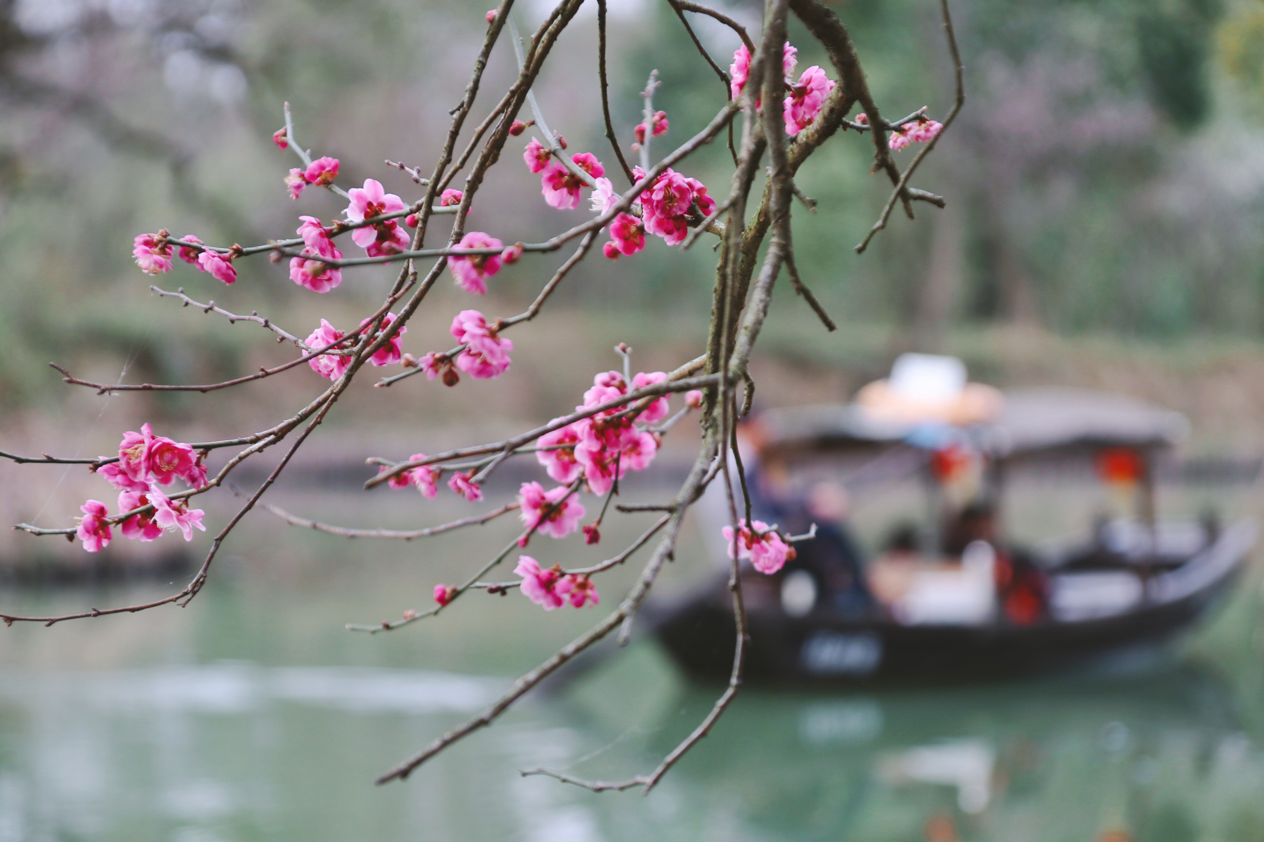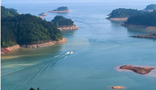穿行溪水中的游船