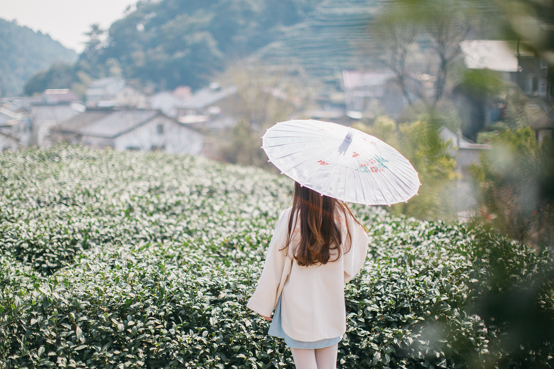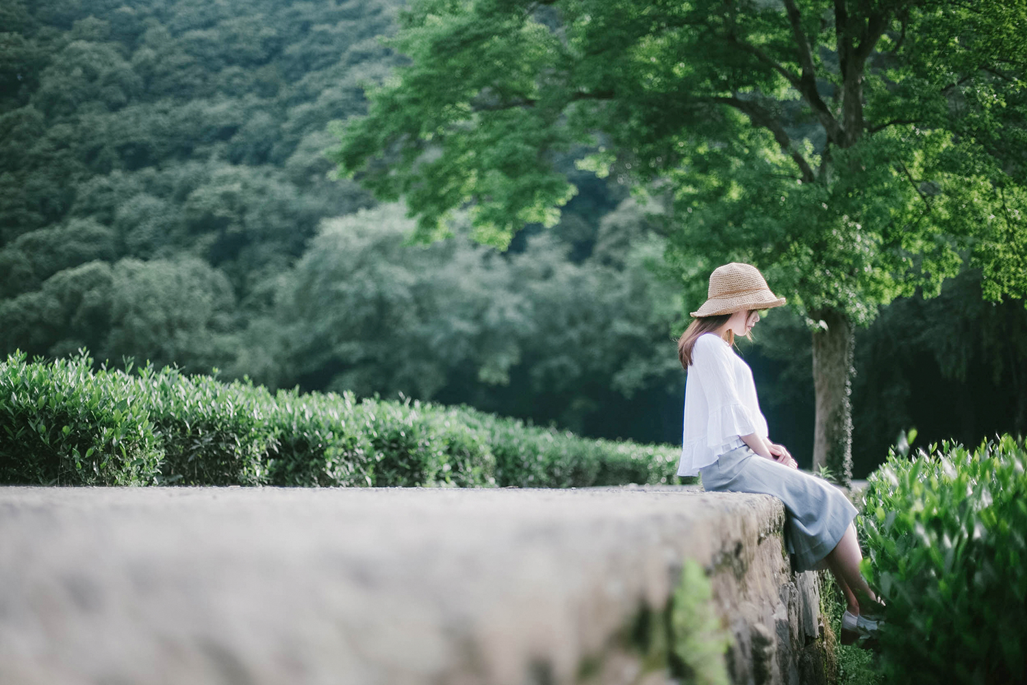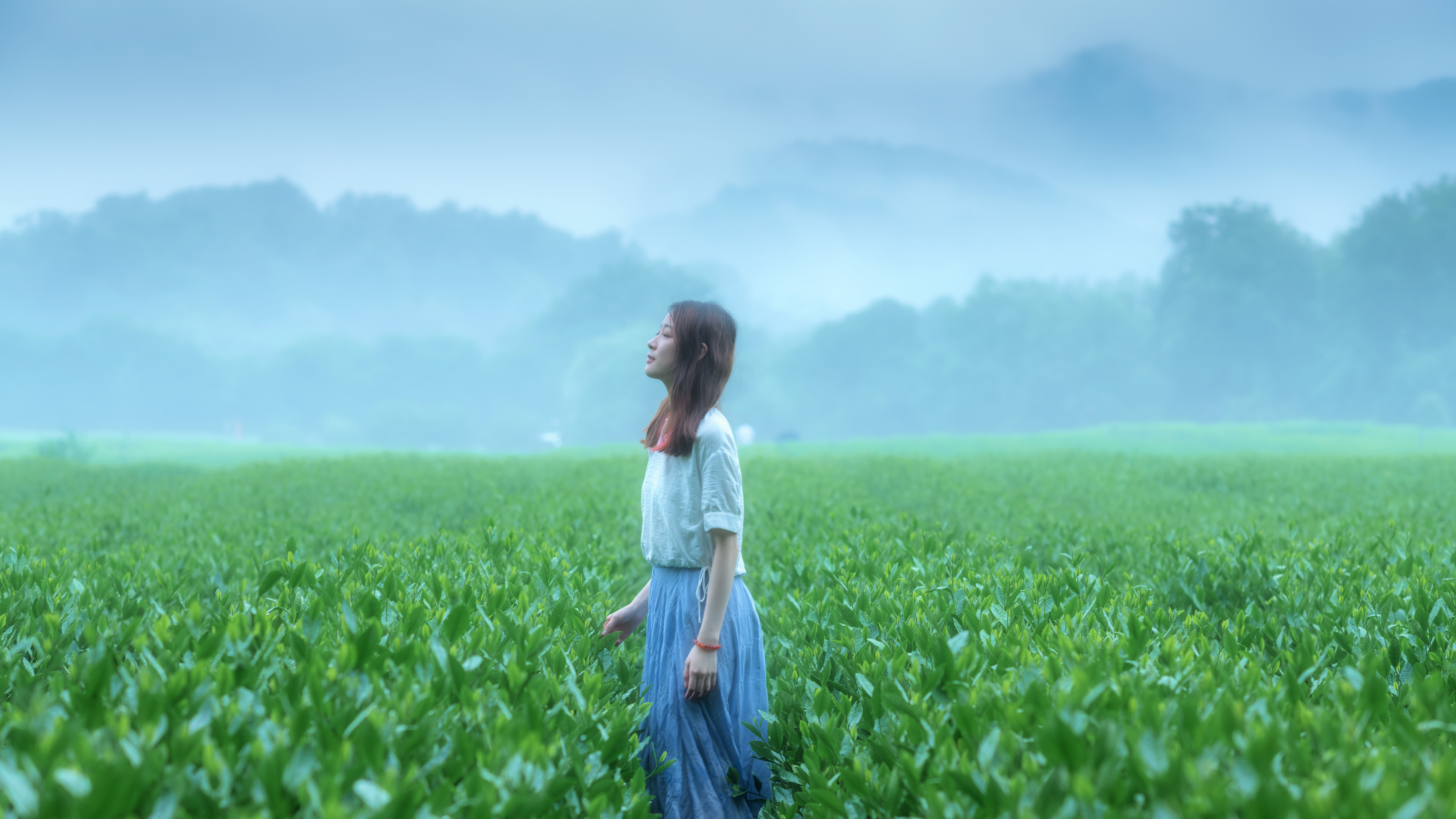 2.易出片场景:茶树丛中、古树下、茶田小溪和石桥上。