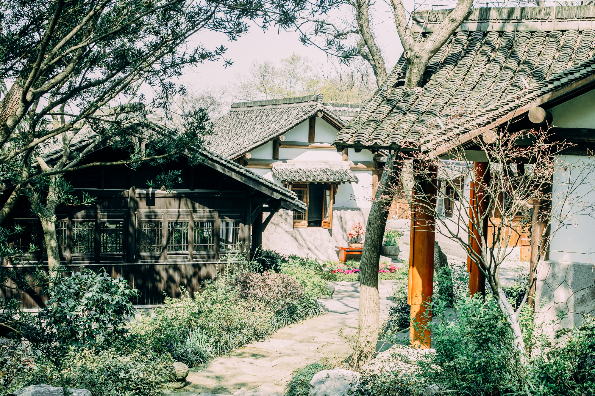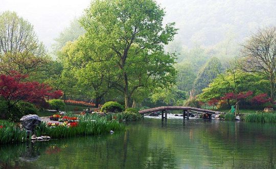 植物园里有园林有盆景有字画展览, 江南 园林的模样,它依稀全部具备。