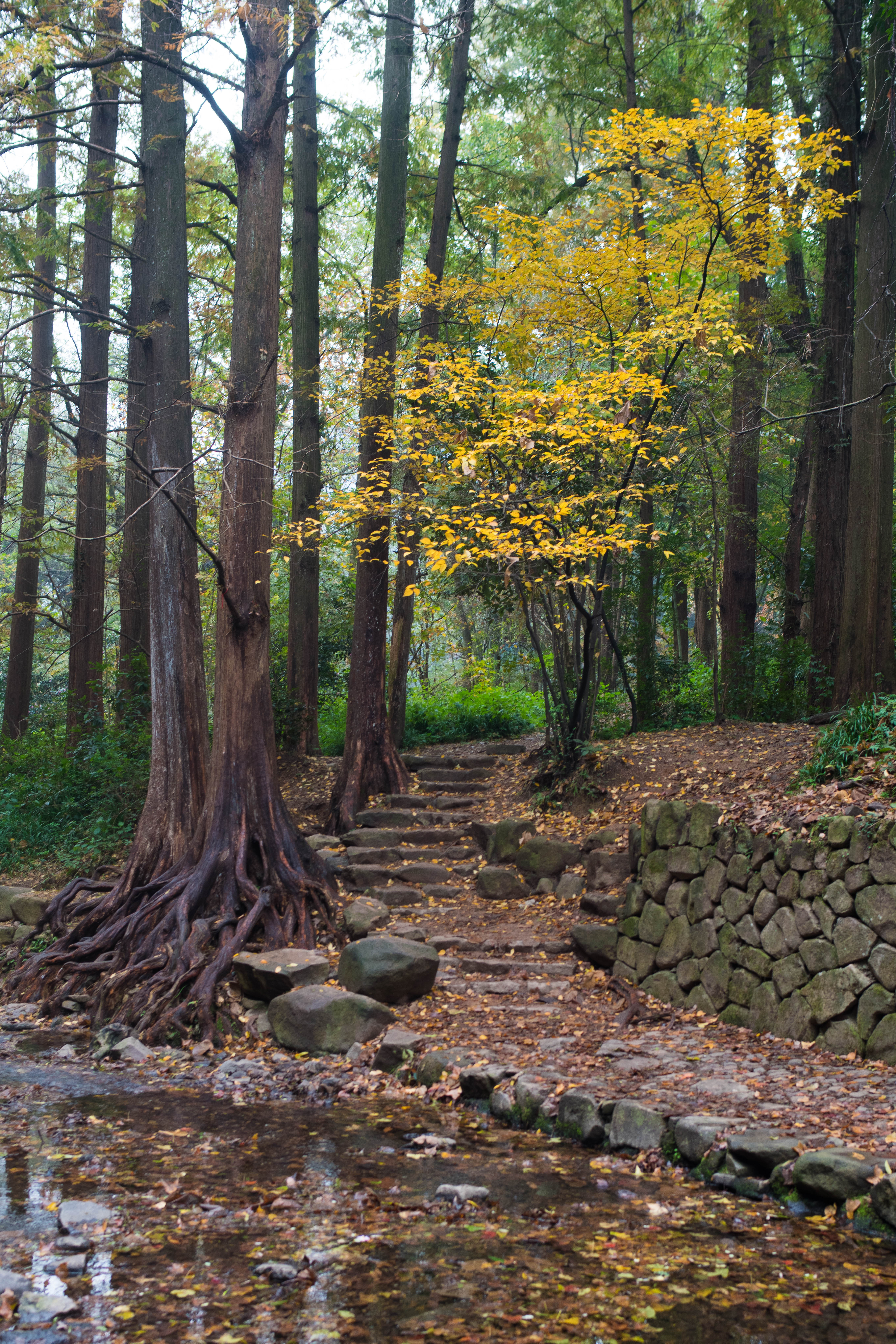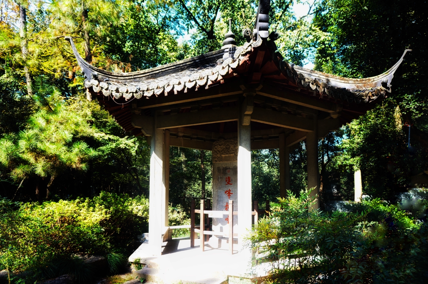 公园在定慧禅寺遗址的基础上又依山势建了亭、堂、钟楼等,正是“曲径通幽处,禅房花木深。”