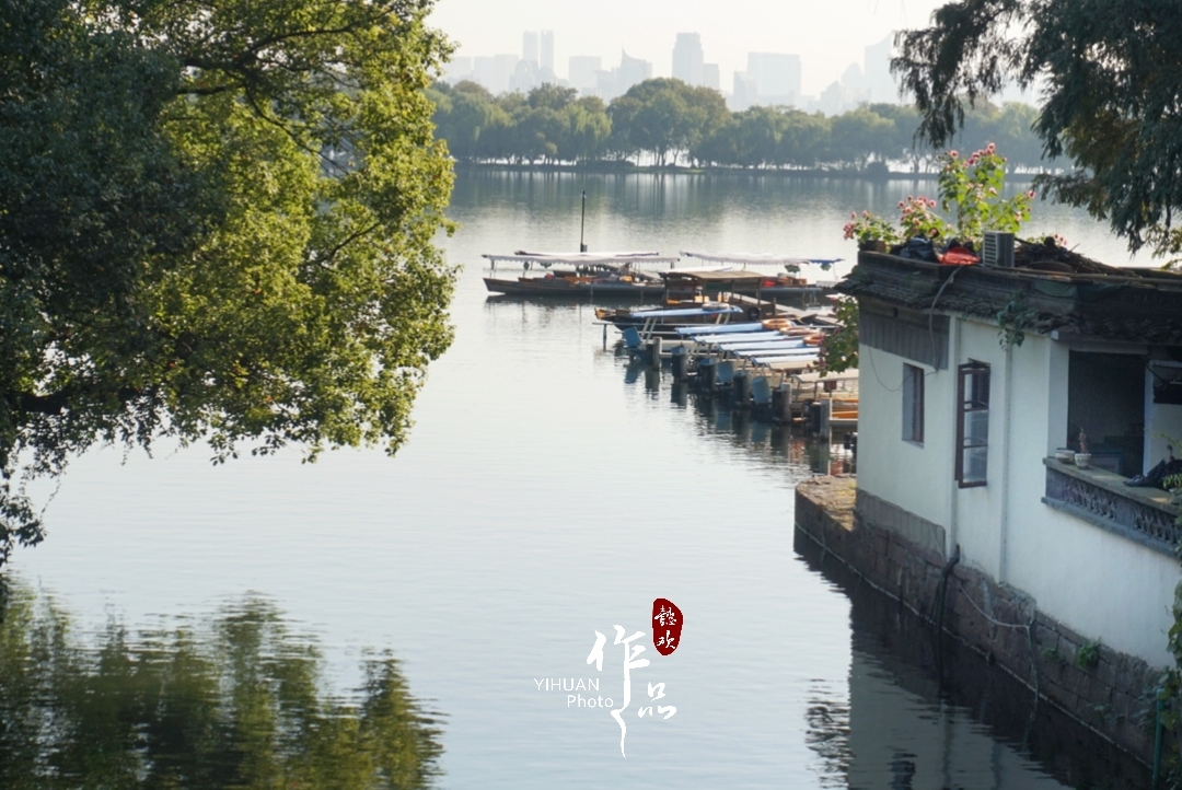 郭庄绝对是会让你惊喜的一个点,门脸很小,进去以后却别有洞天,里面临湖筑榭,曲廊环绕,花木簇拥,湖石假山,玲珑精致。最妙的是庄内庭园为半开放设计,恰好揽一片西湖水入怀中。转过临湖水榭,眼前顿时开阔起来,波光粼粼的湖面上,荷叶掩映着游船,雷峰塔与保俶塔一左一右如同金刚矗立。