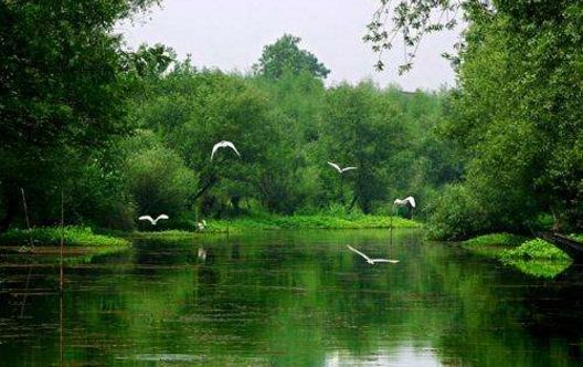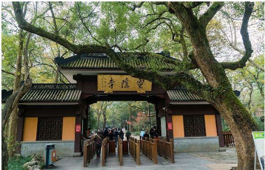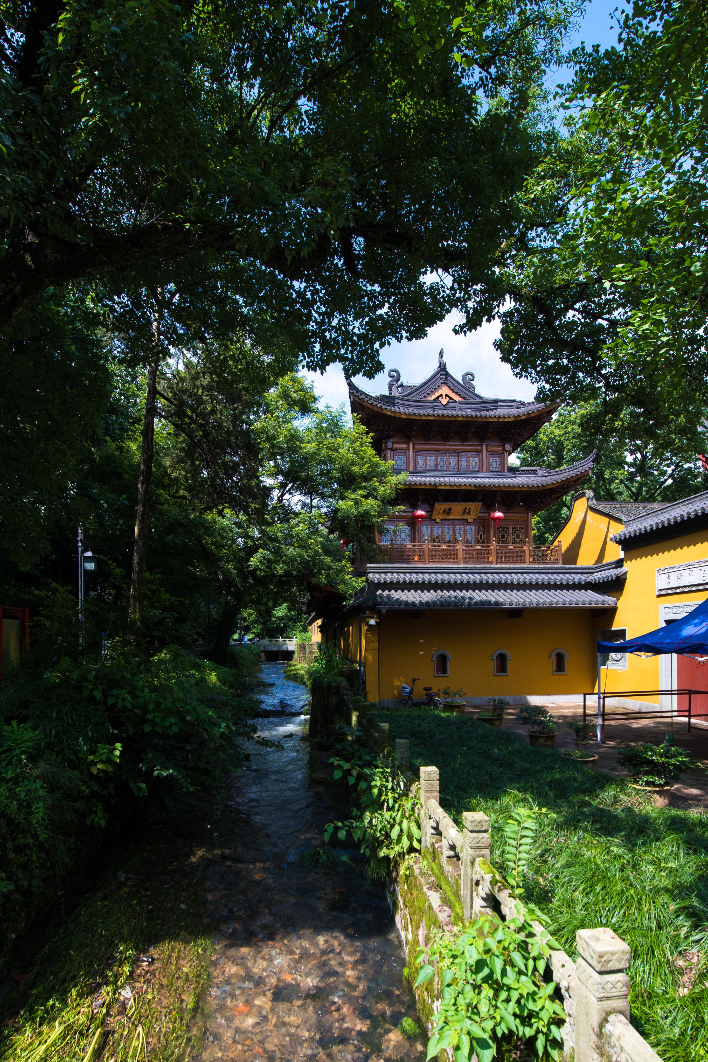 (溪流、密林、古刹构成的天竺三寺景观)