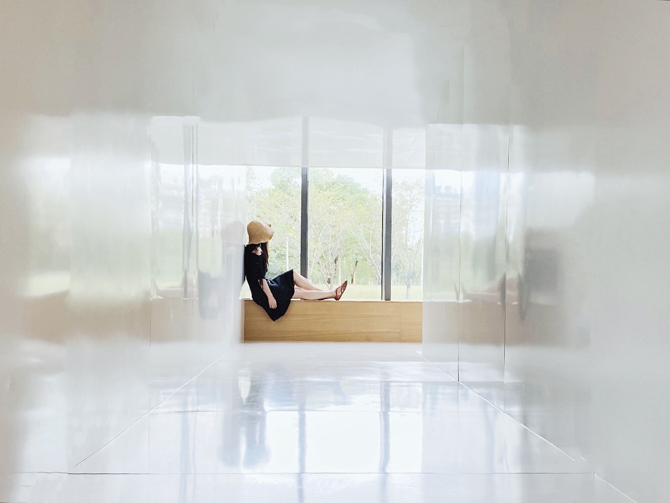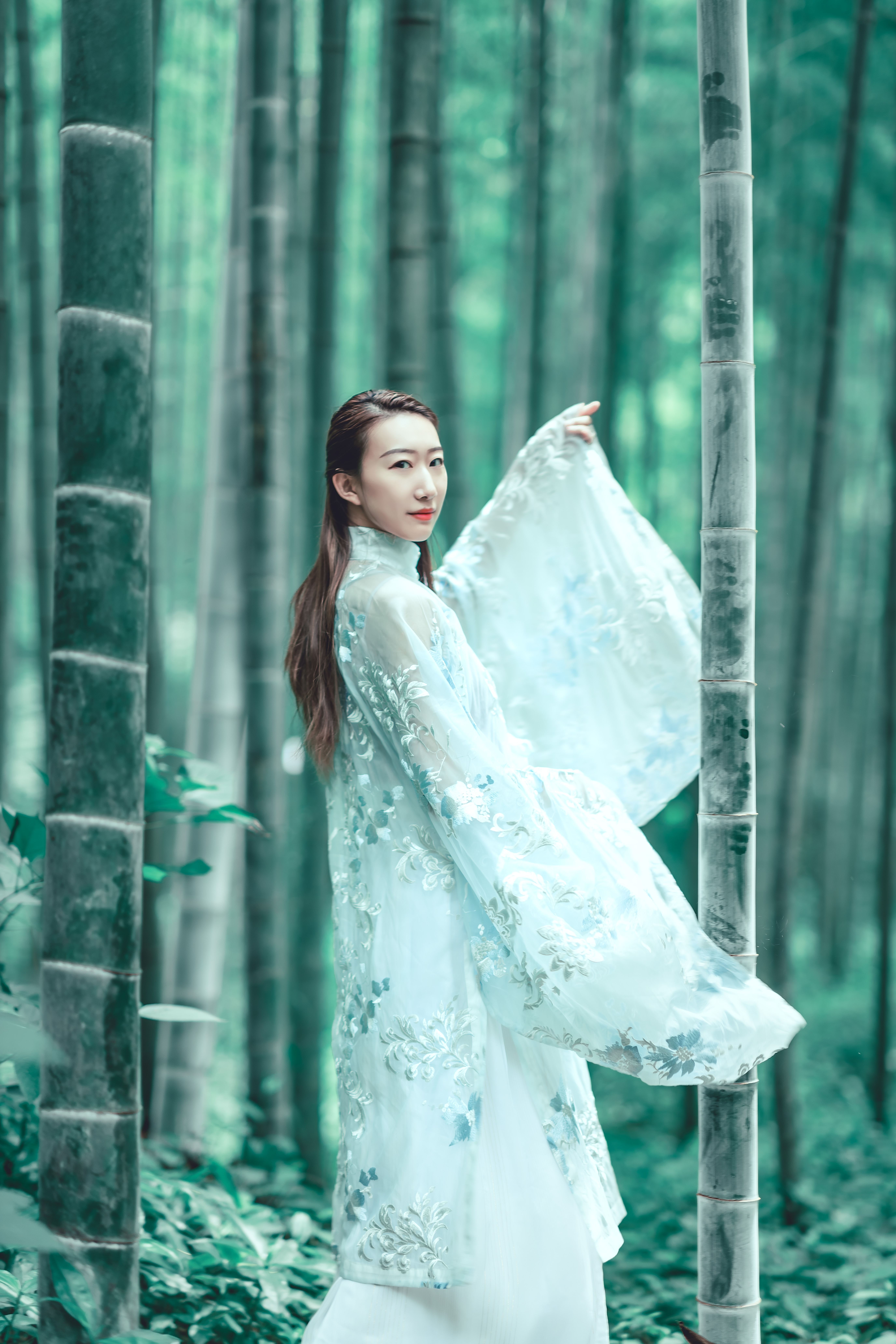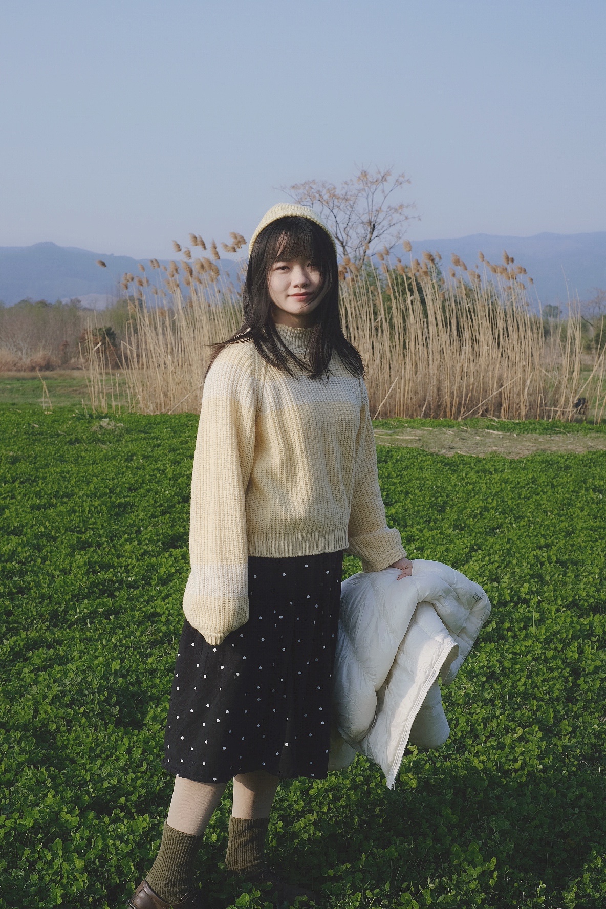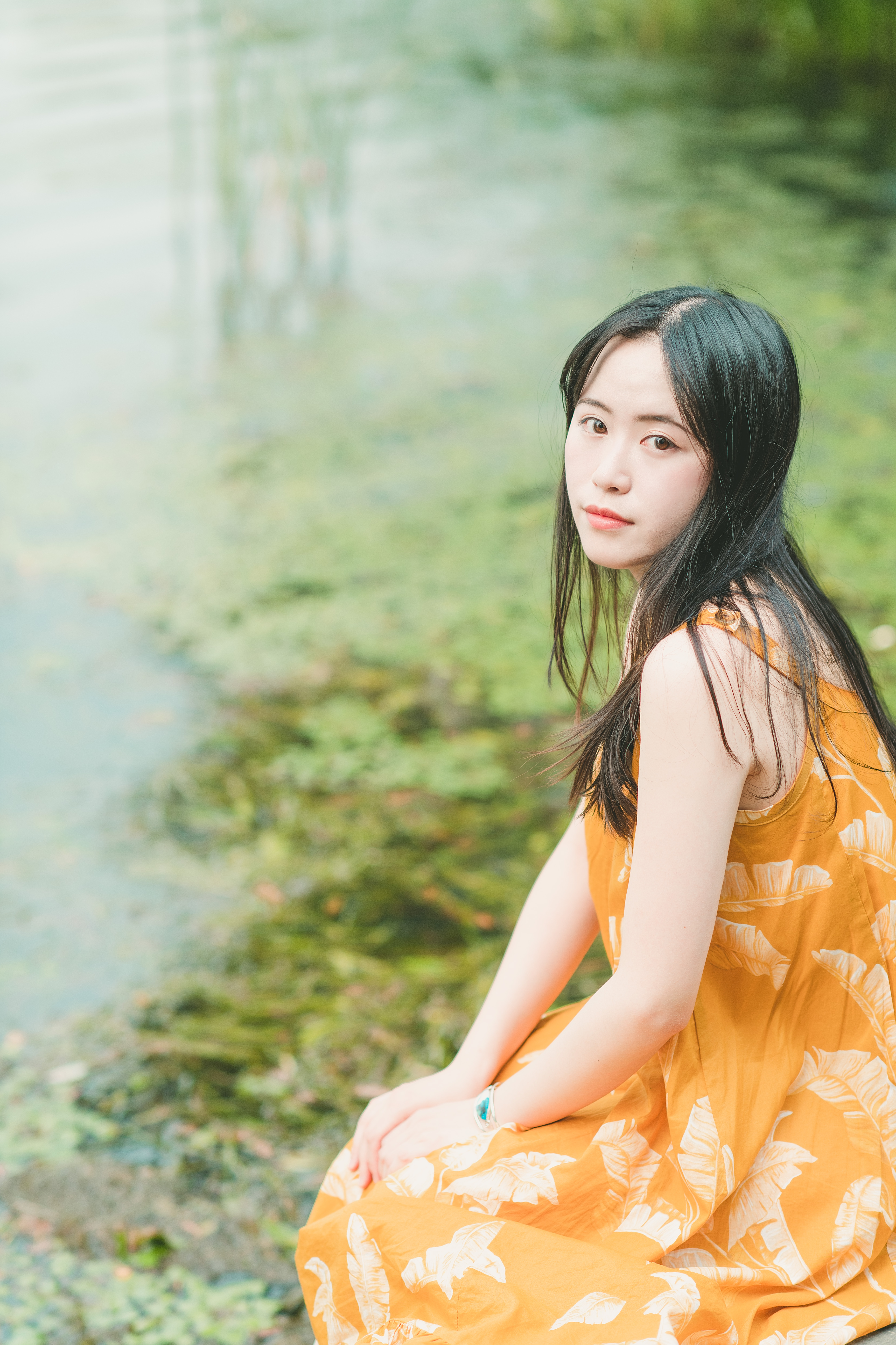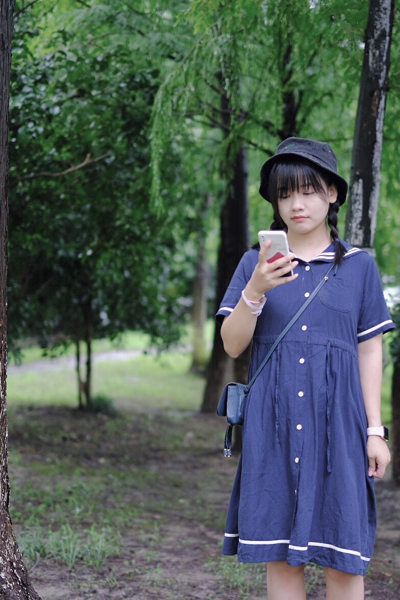 3.建议穿淡色衣服+裙子出镜,与绿色比较搭。