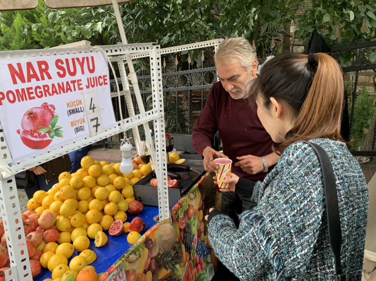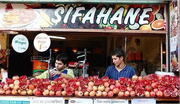 的石榴汁应该就像我国的豆浆一样常见吧。不过有意思的是,