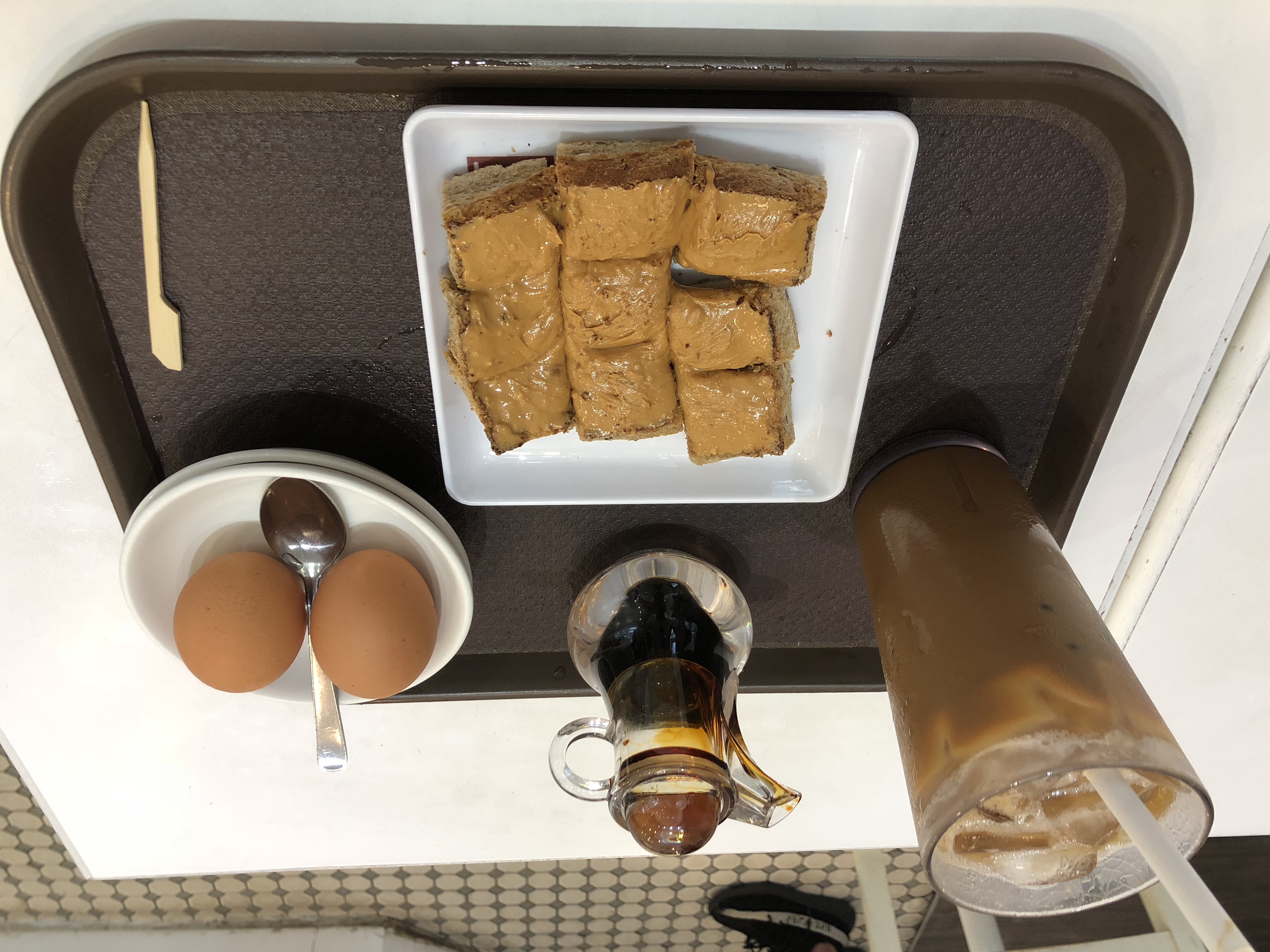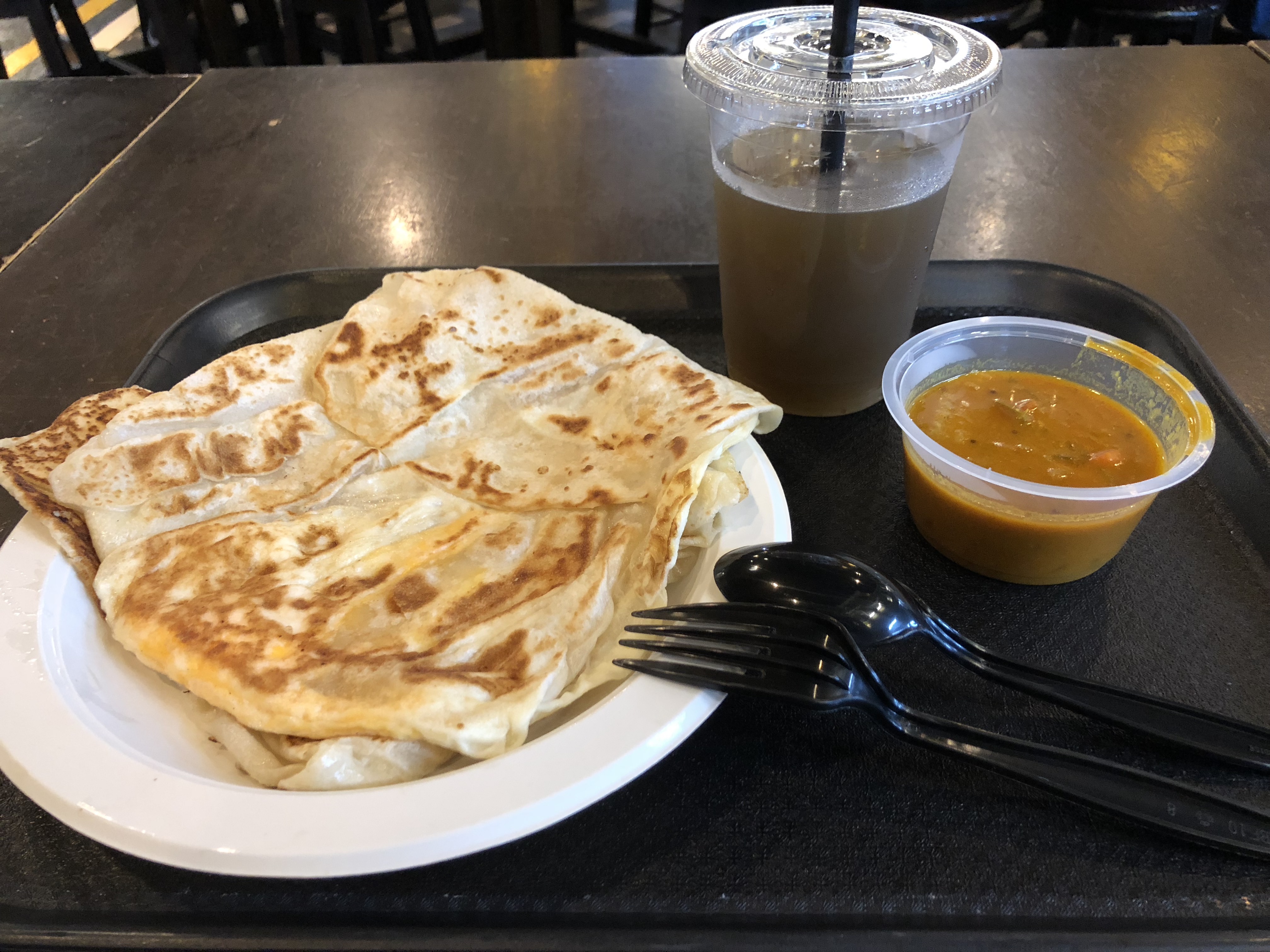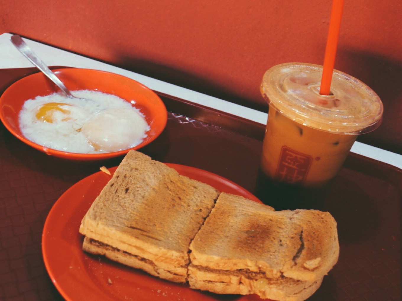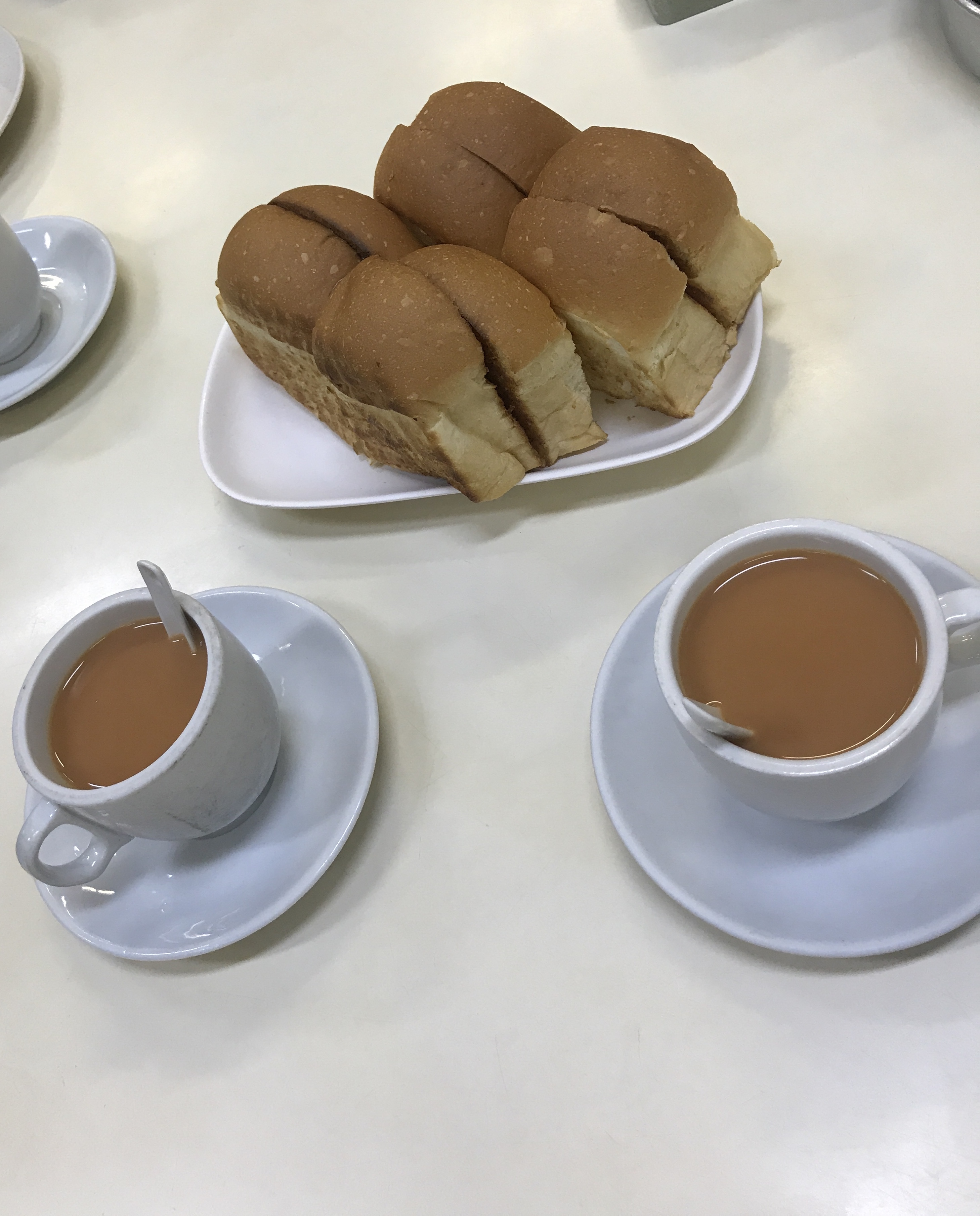 肉白色的是薏仁水,一般都是加冰的,不要冰的话要加一元新币,黑色的是咖啡加冰,黄色的是橙汁加冰。两个像包子一样的东西,一个是真的叉烧包,一个没有褶子的是豆沙包子。这俩包子都好小啊!基本上一口一个。买记错的话,水大概是3元新币一杯,包子和油条是3元两个。