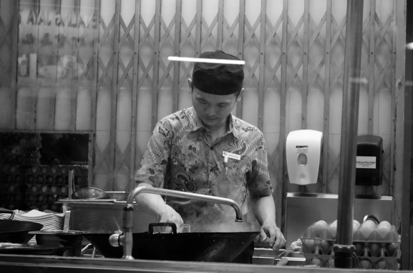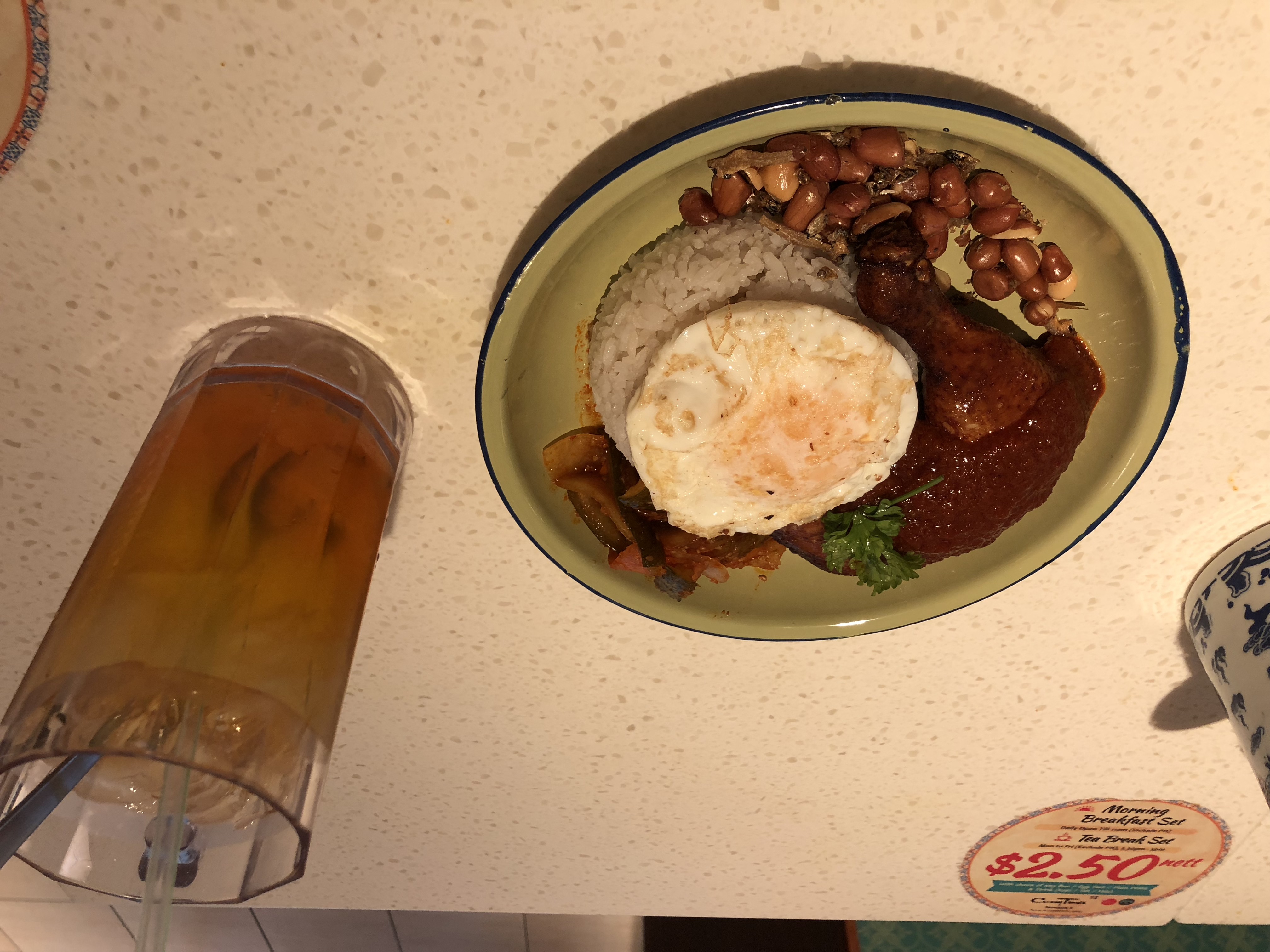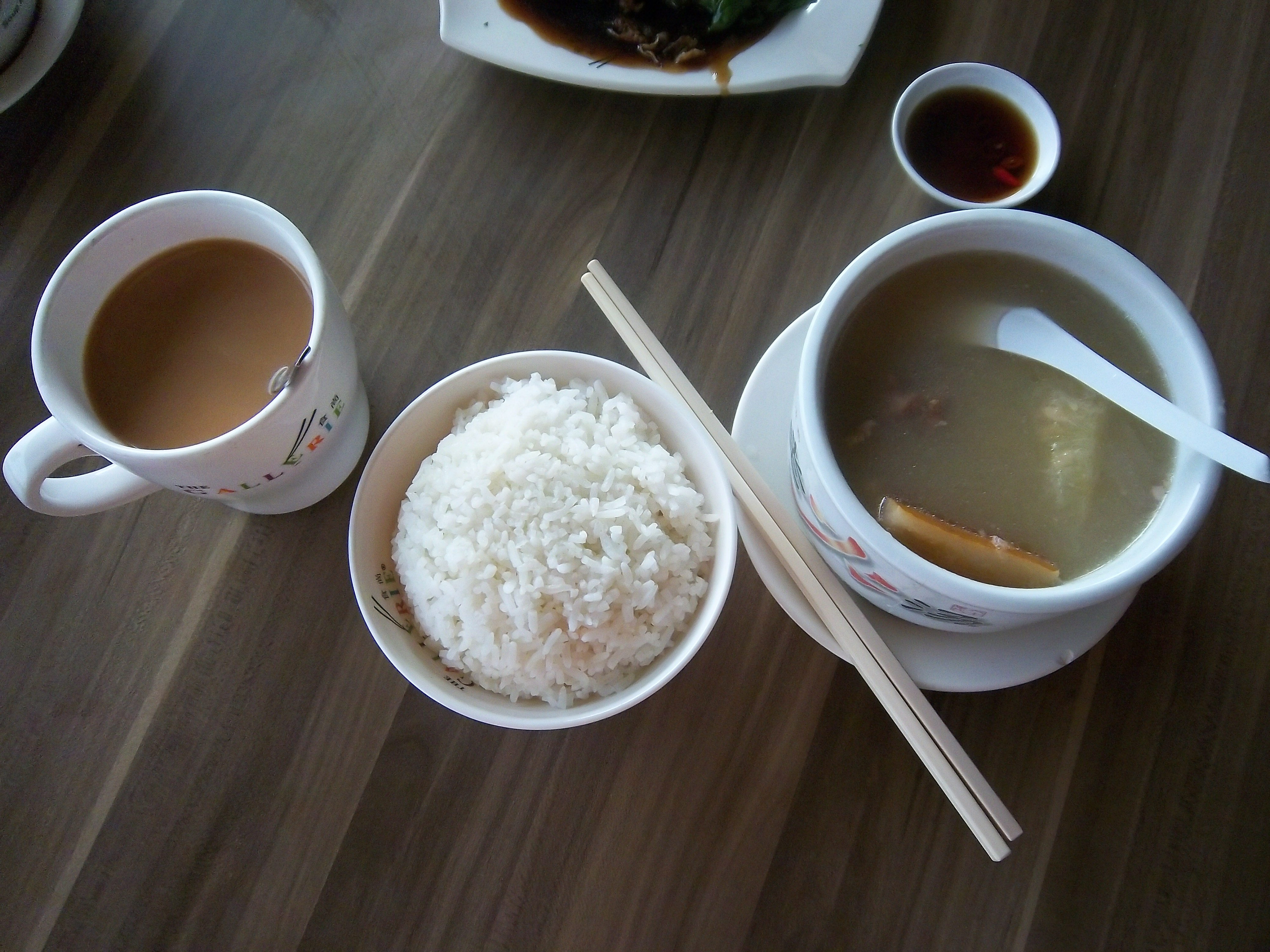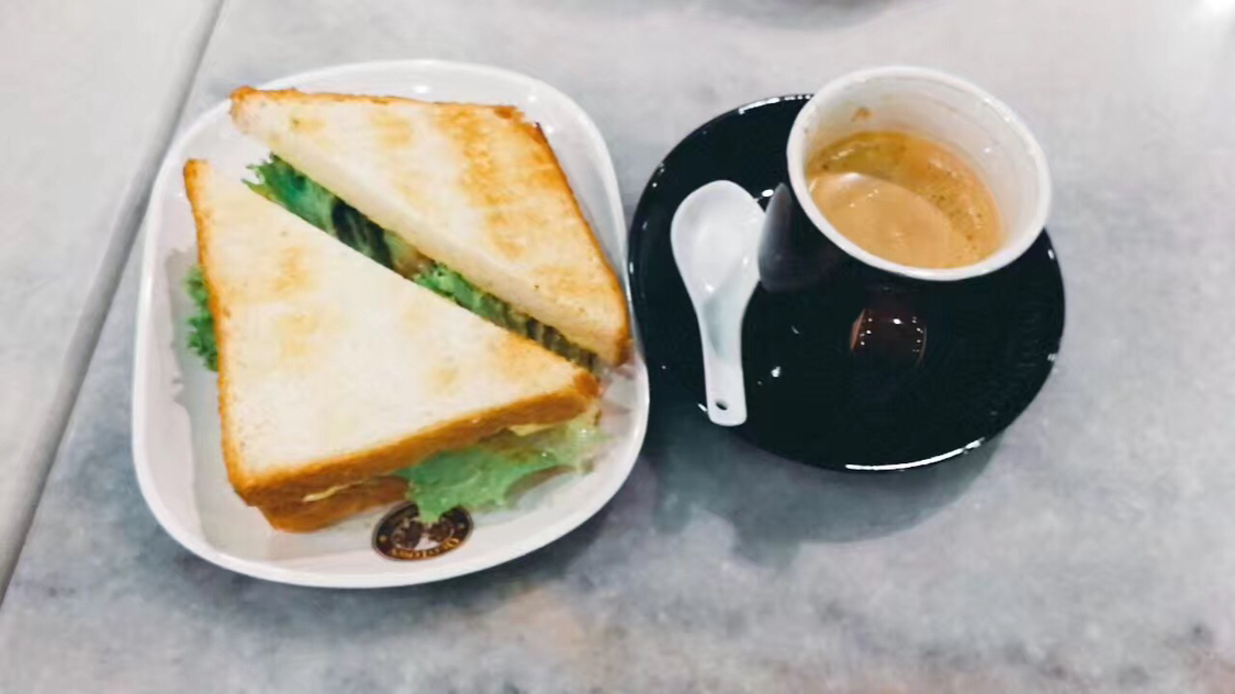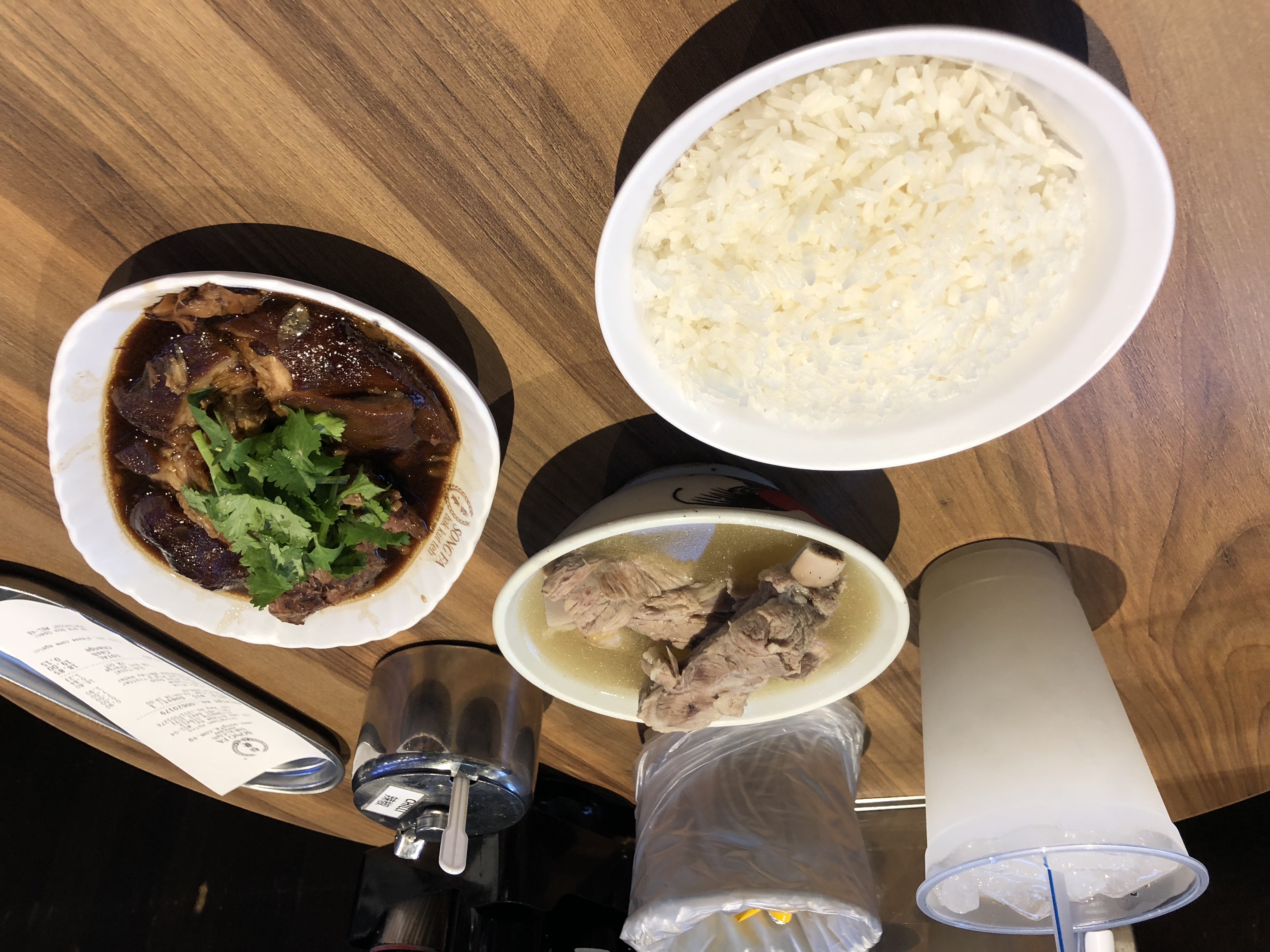 咖啡、白米饭、肉骨头汤一盅一盅的卖。