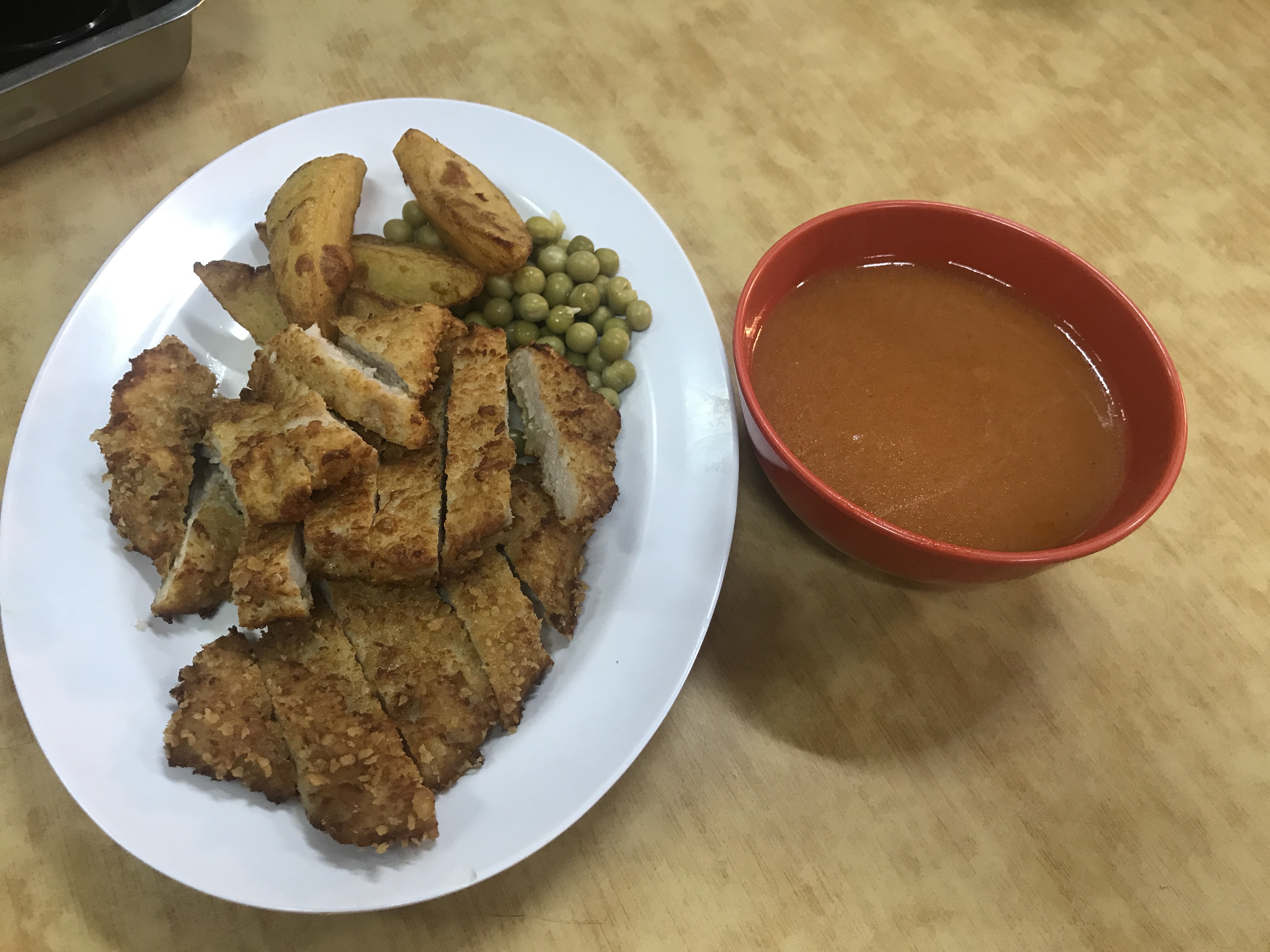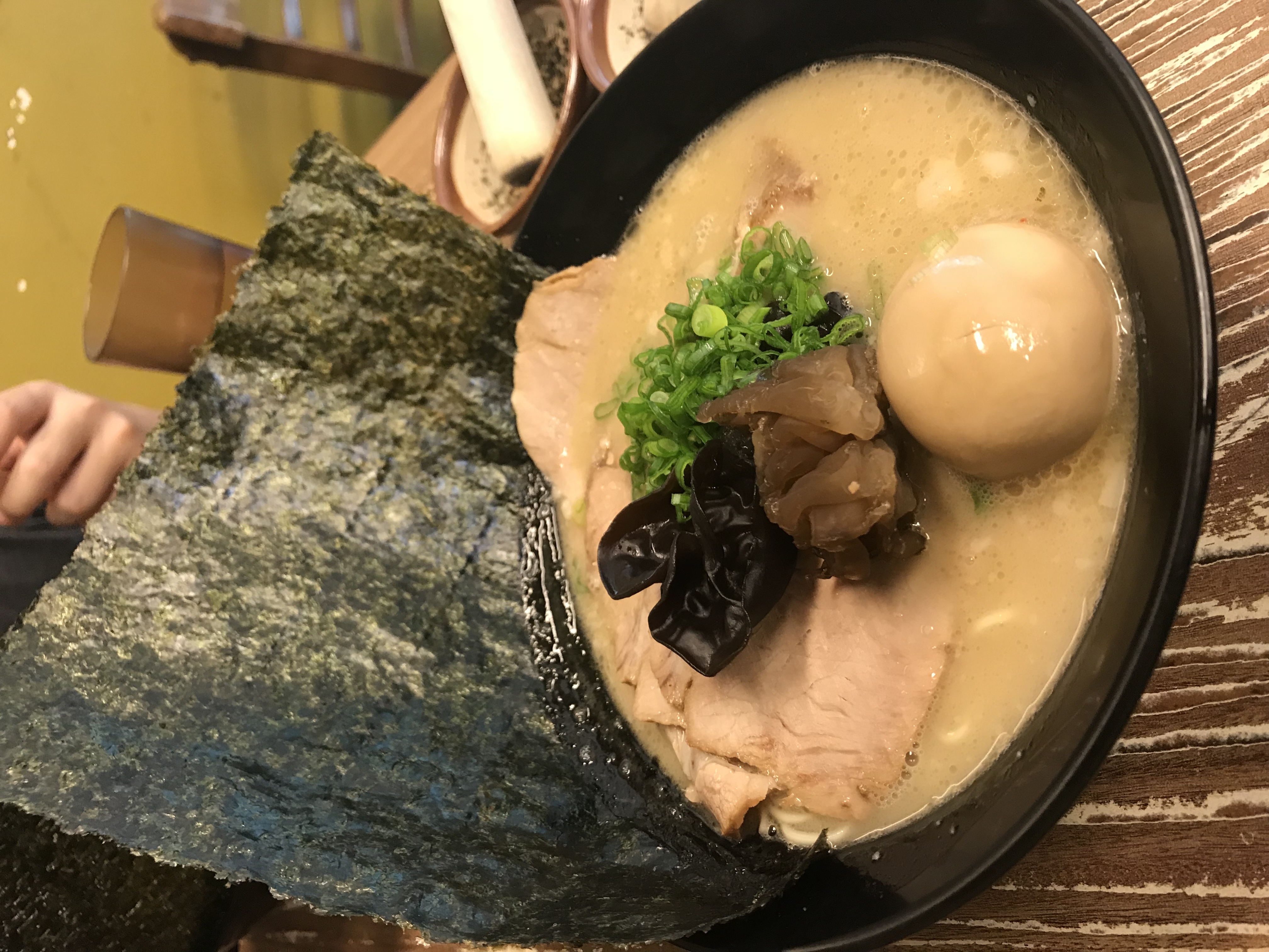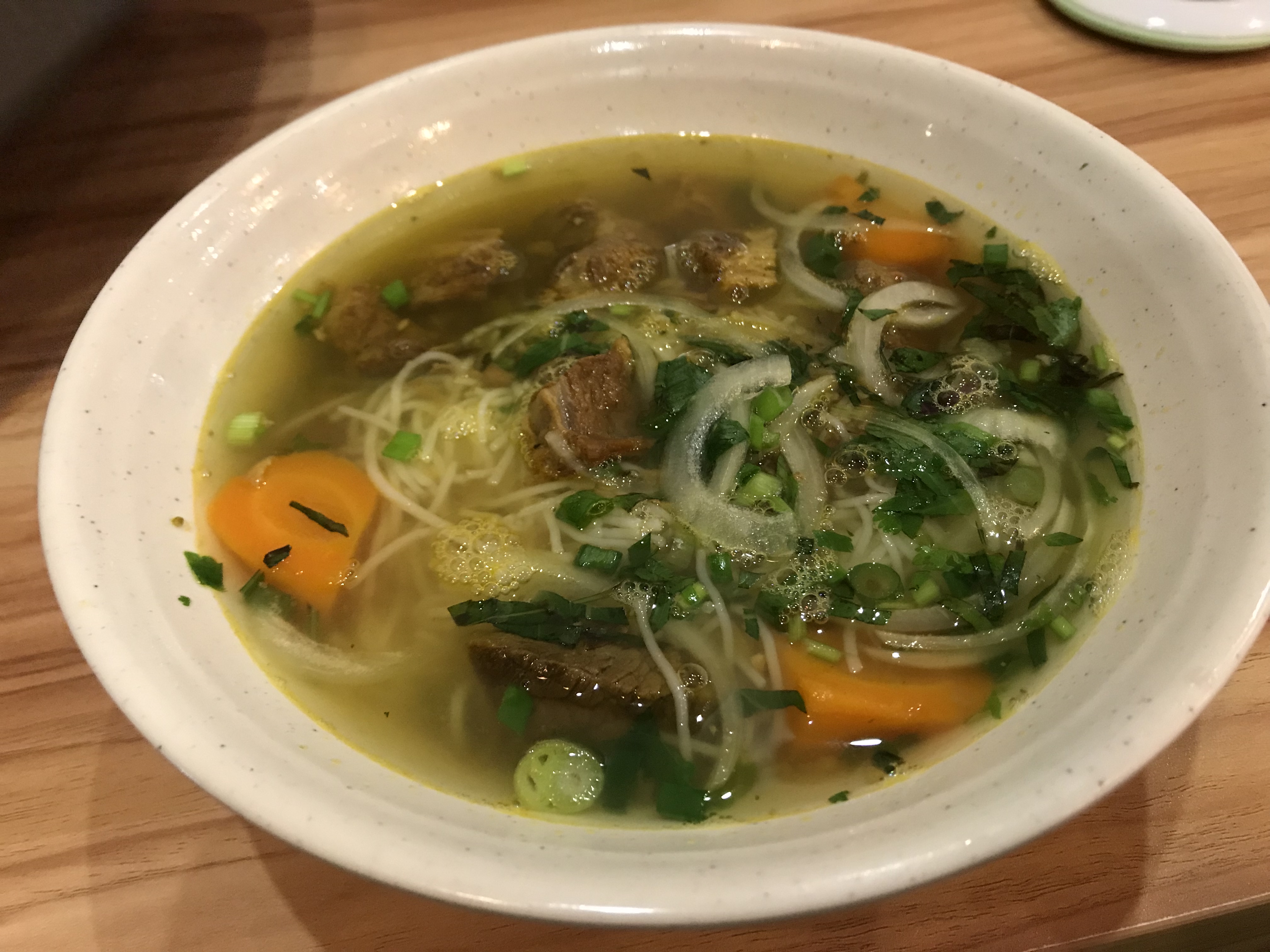 其实,就是有胡椒味道的猪骨汤,汤汁鲜美入味,红烧猪脚入口即化。