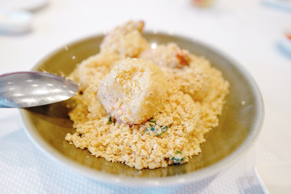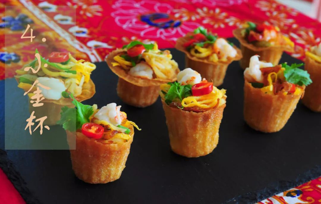 小金杯杯子本身是炸过的面粉,脆脆的。而剩余的食物分盘放置,如果没有吃过的大概都不知道怎么下手。