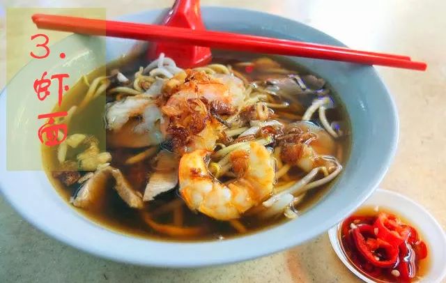这是福建人带去马来西亚槟城的。但它之所以叫虾面,不单单是配料有几只大虾,最主要的是汤底为虾汤。