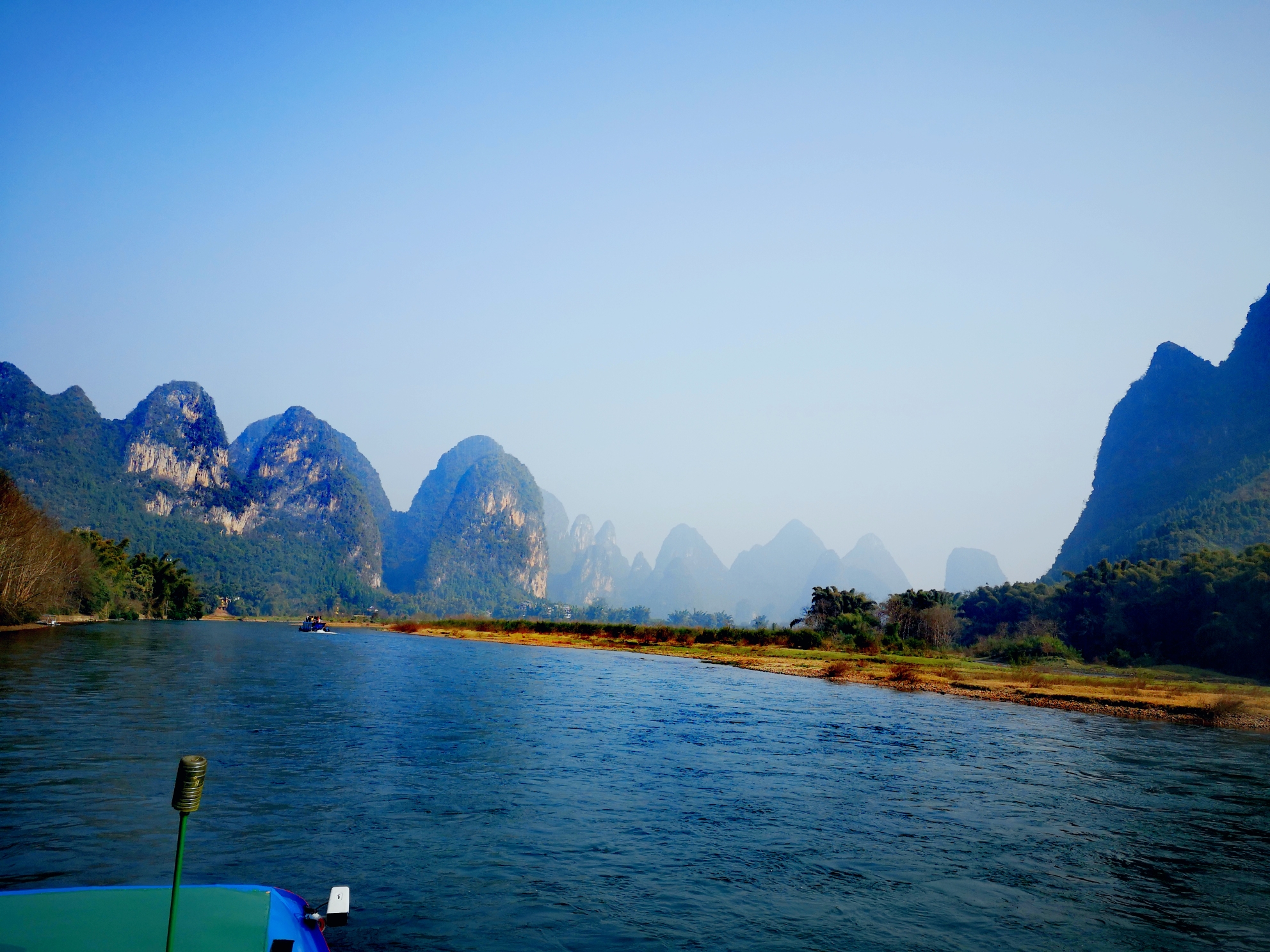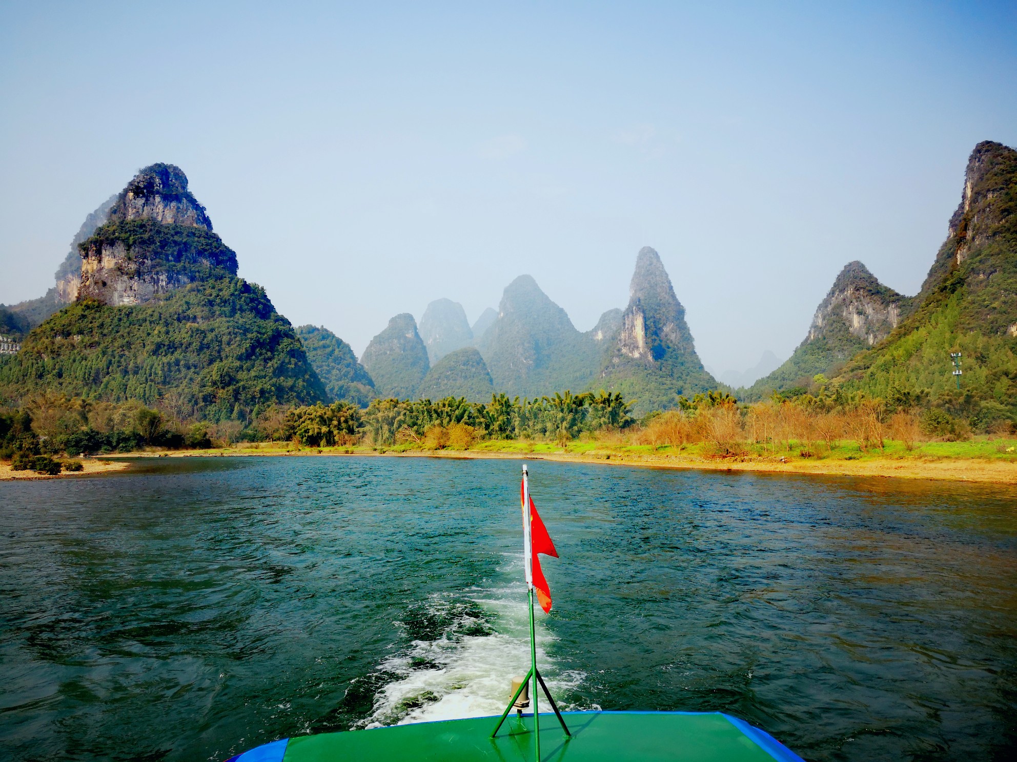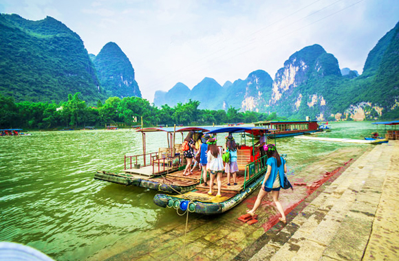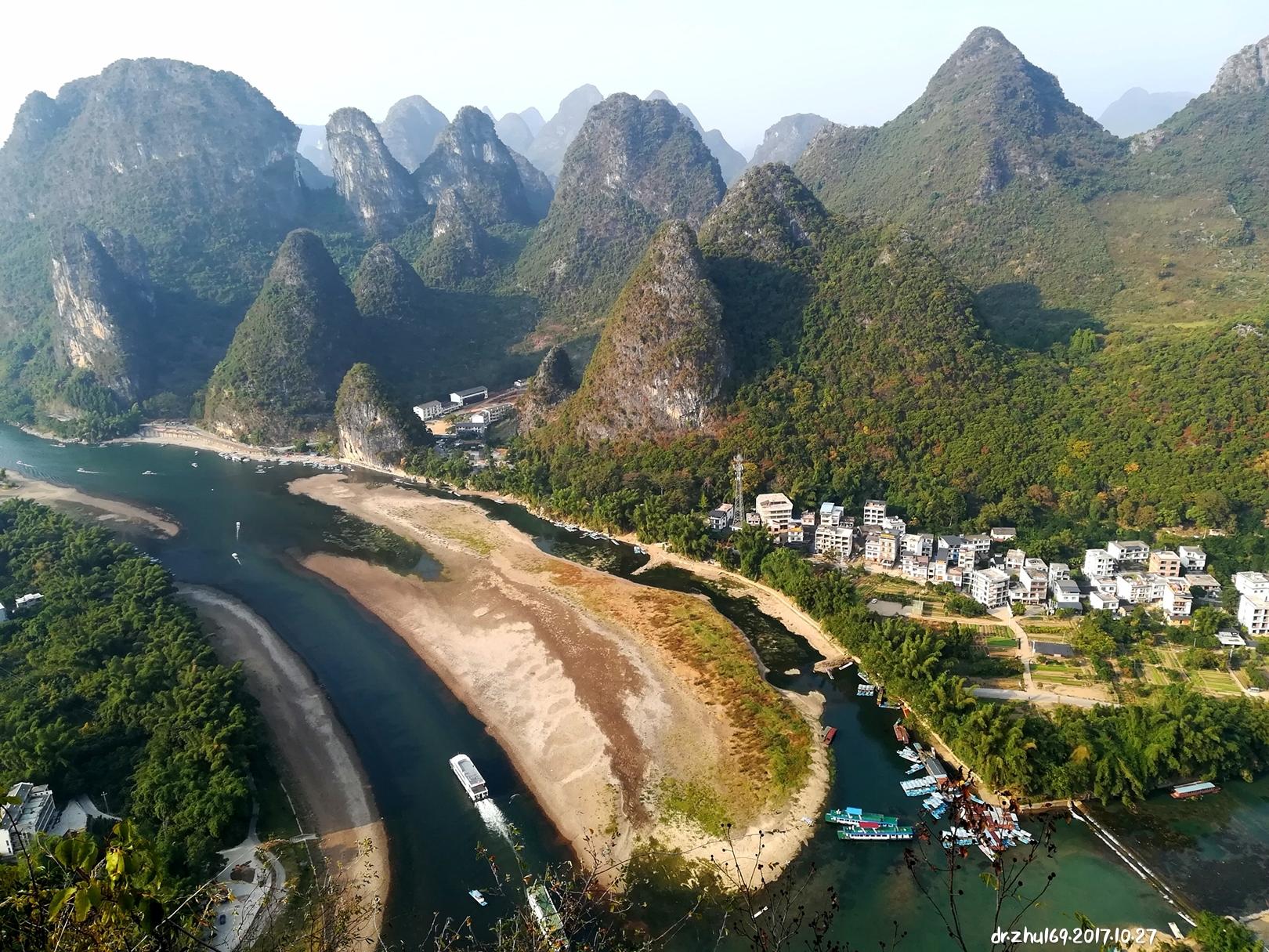 桂林山水甲天下的是——漓江!是阳朔的百里水路,游览甲天下奇景游船/竹筏也是顺流而下,到阳朔的。