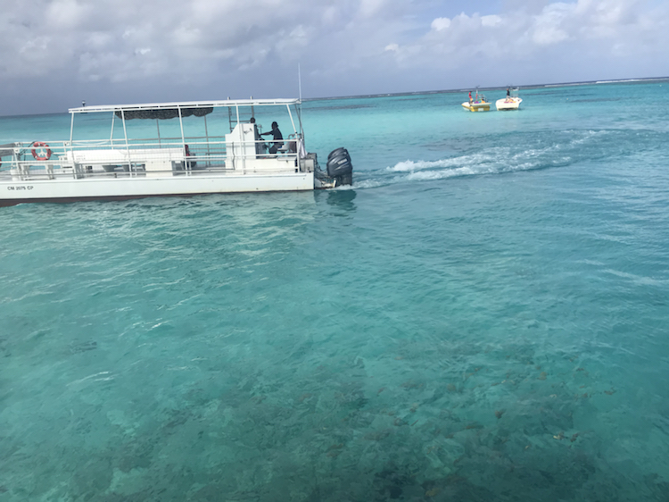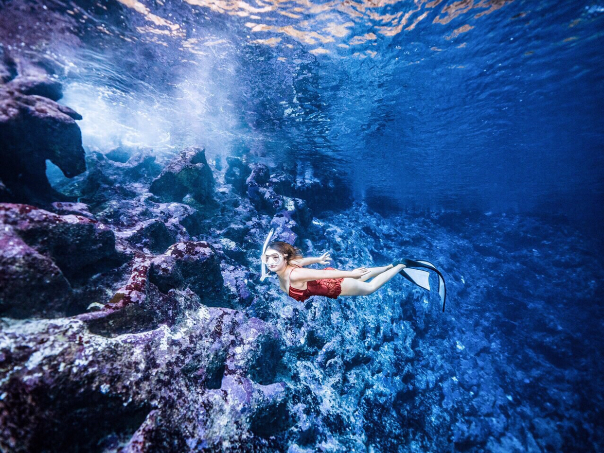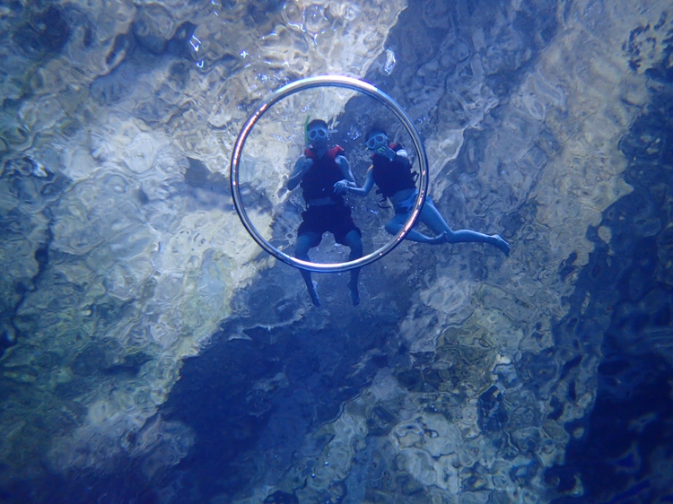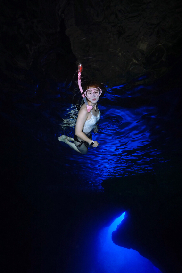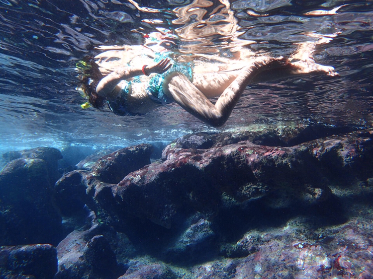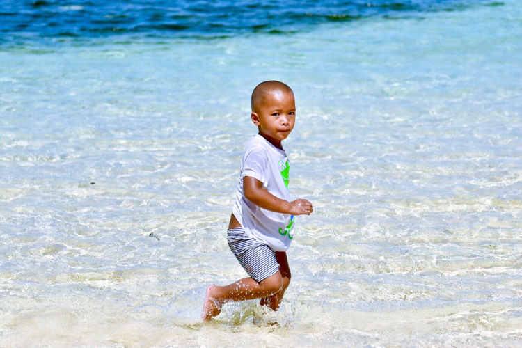 水刚刚没过脚踝,还能看到小鱼游来游去。