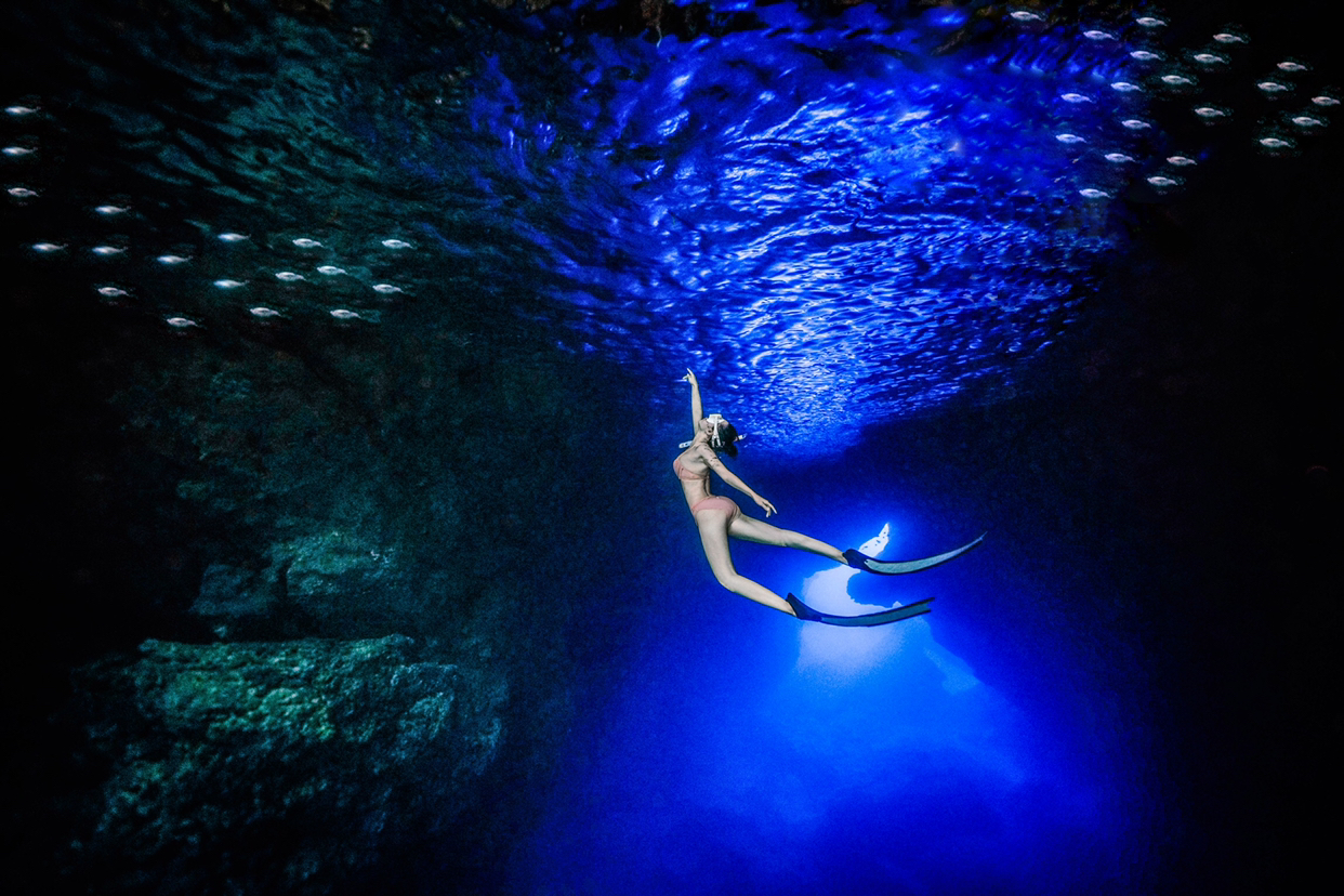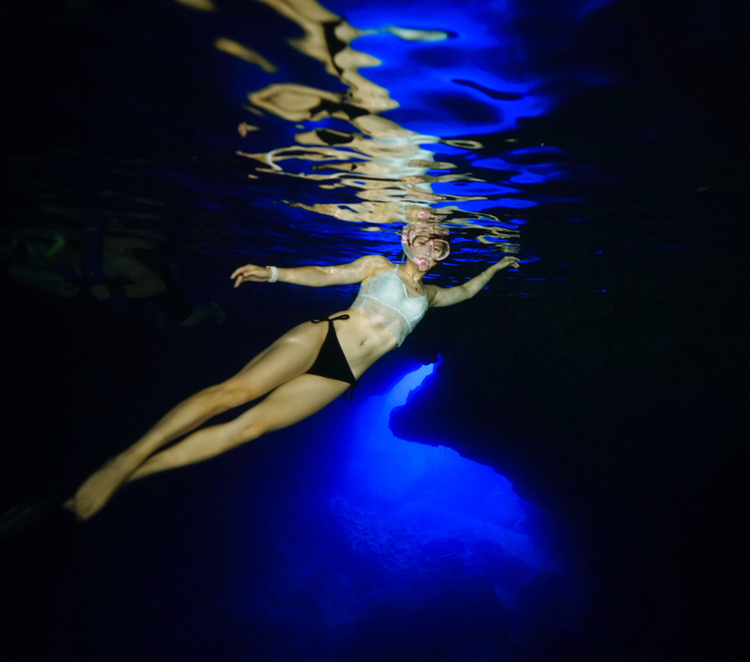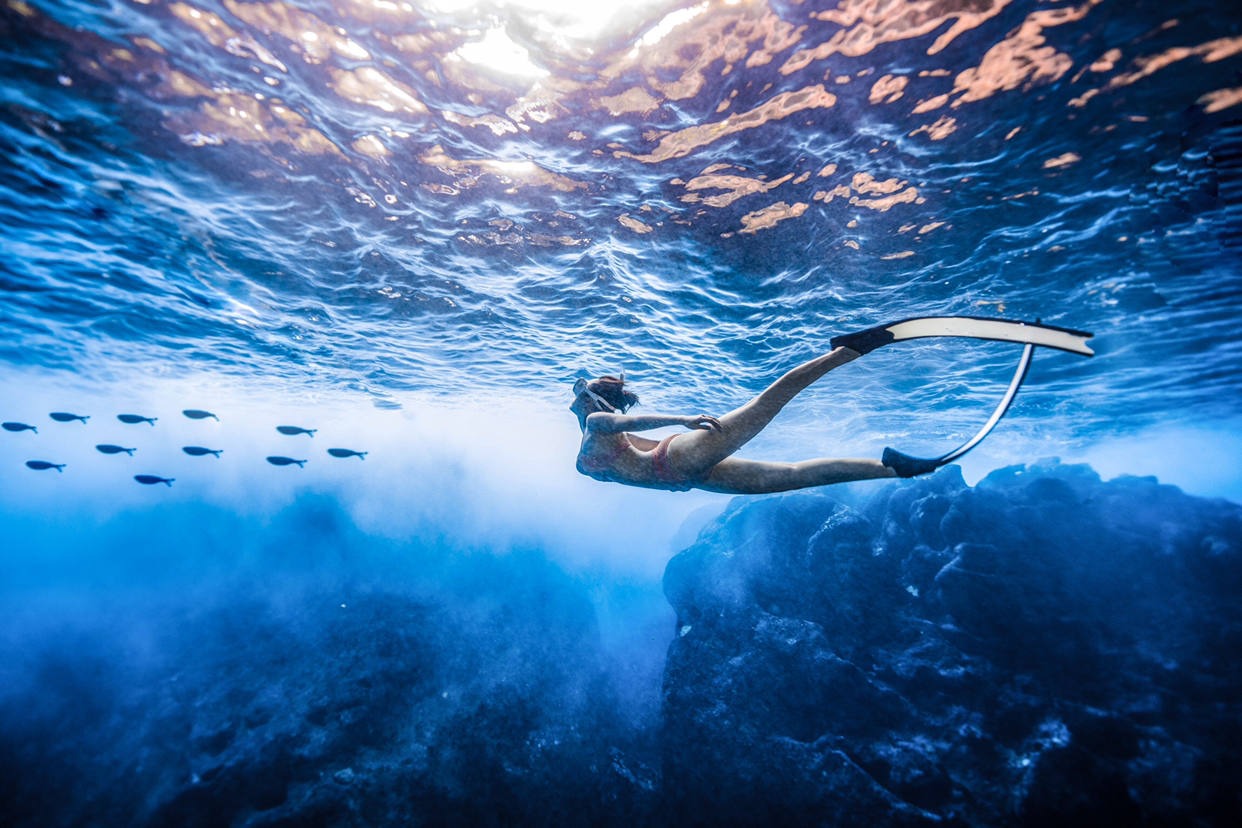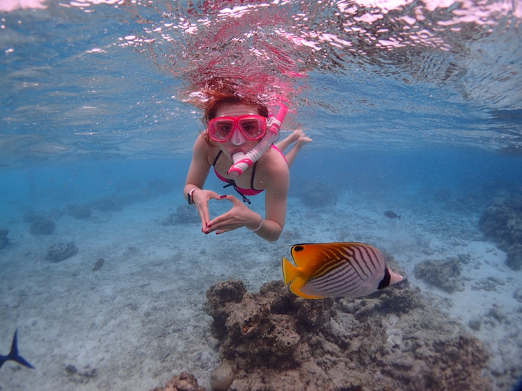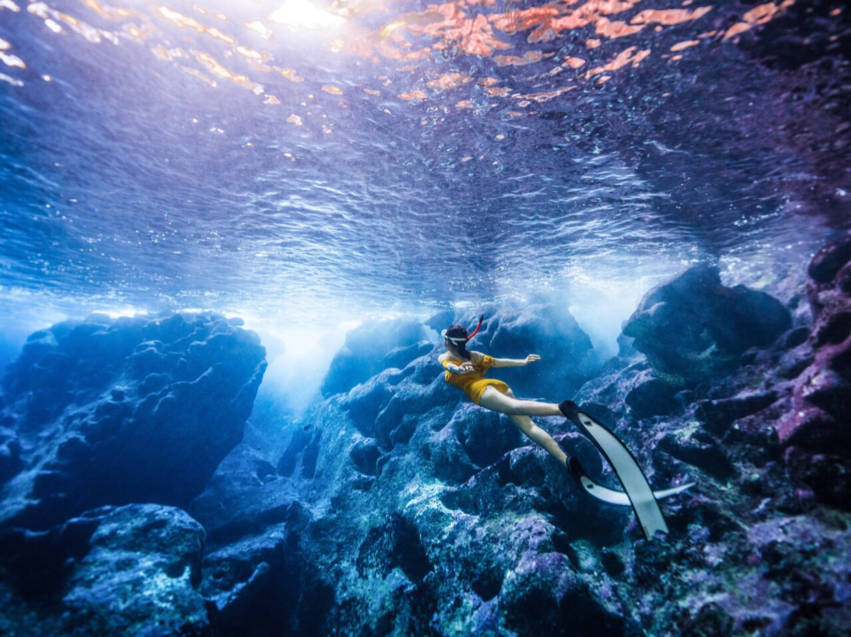 水刚刚没过脚踝,还能看到小鱼游来游去。