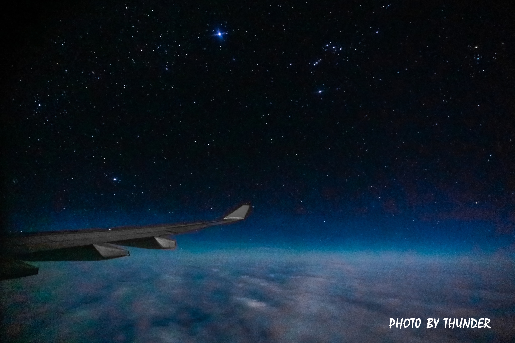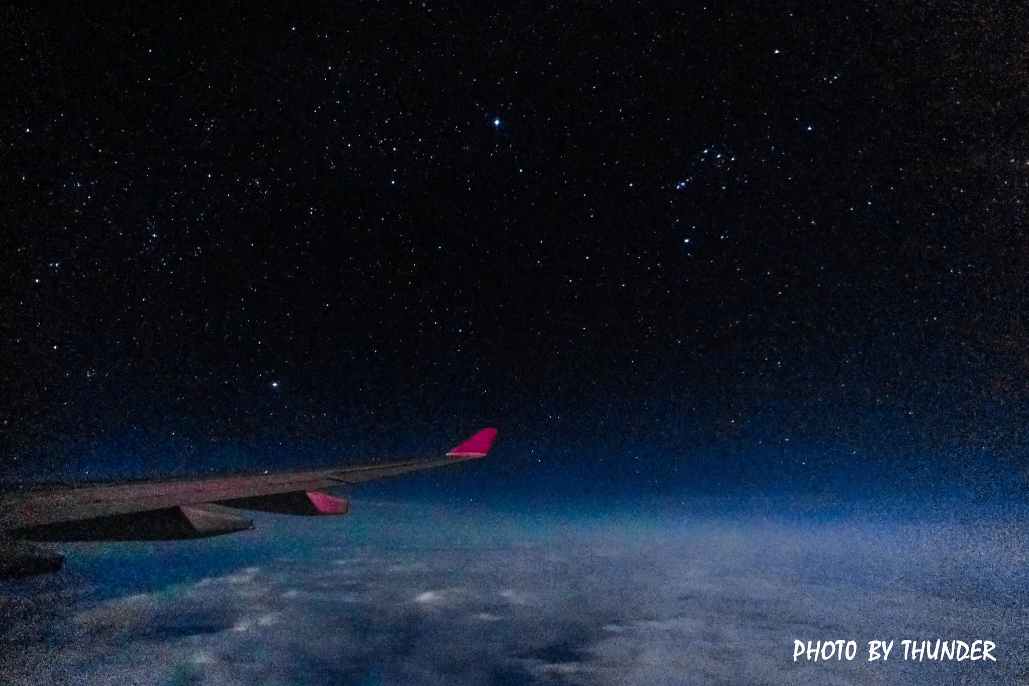 国际机场这还是之前在蚂蜂窝看到一个博主在飞机上拍到了银河,当时十分羡慕,就想着之后也能尝试一下。因为不能用三脚架需要长时间曝光,所以手一定要稳,为了避免反光我把镜头贴在玻璃上,用毛毯遮住镜头周围。身体十分扭曲的拍了大几十张照片,才选出了这几张还可以的照片。