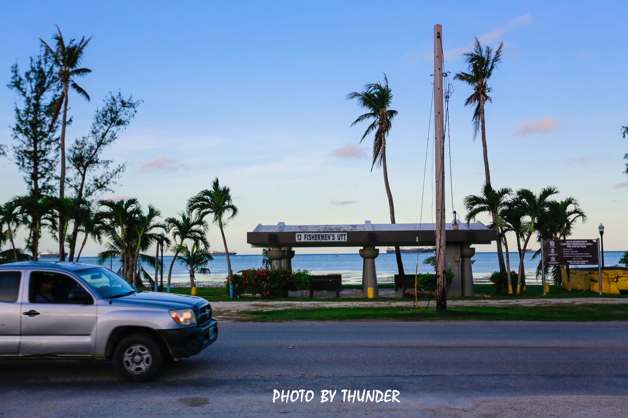 滨海庄园酒店过个马路就是海,车流量还是比较大的,不过塞班这边的车都会让行人,看到你在过马路就会减速停车让你先过去,顿时好感度倍增。