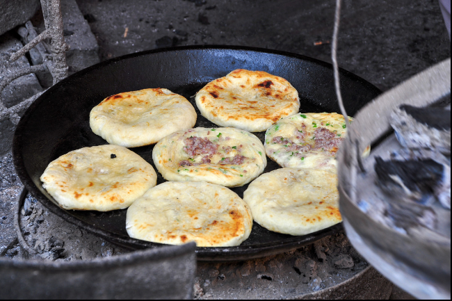 还能吃到美味的面饼:锅盔。