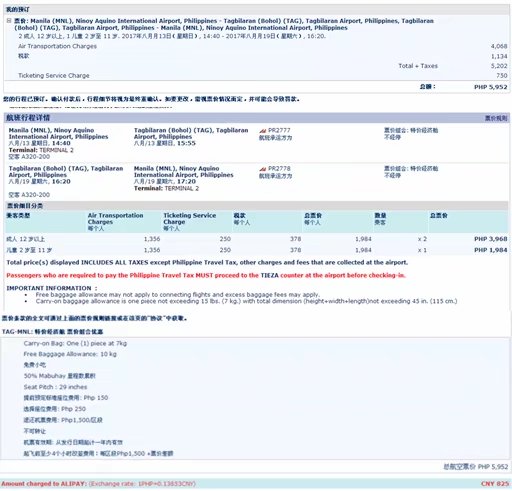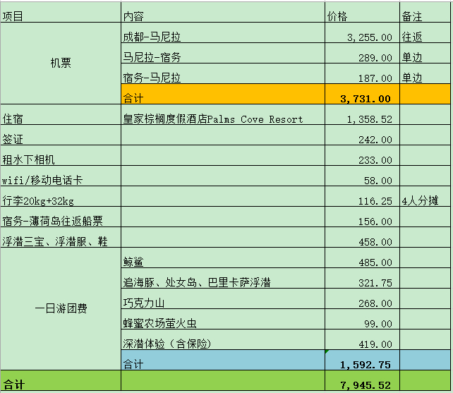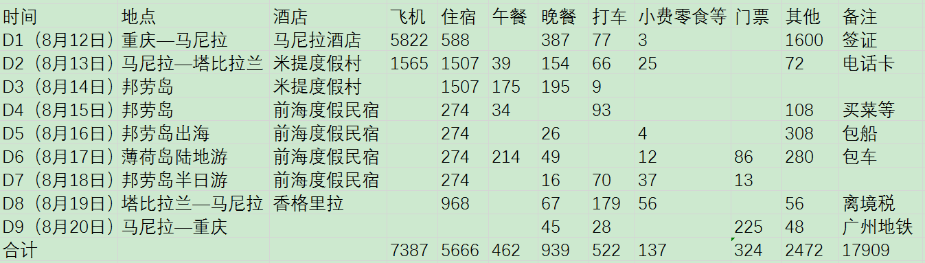 以亲身经历说话:两大一小,9天8晚,上海——马尼拉——杜马盖地—(船)—锡岛—(船)—邦劳——马尼拉——上海(含20KG行李)。转一圈的路线,当然也可以反方向。
