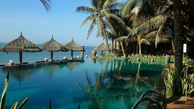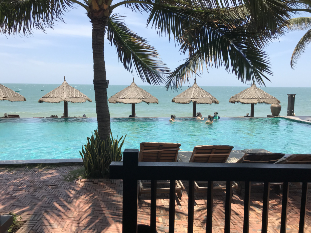 美奈的度假村都是沿着海岸线建的,从高档酒店到民宿,各种价位都有,特别爽的是低价就可以享受到海景房,去美奈的时候住在Joe's Cafe and Garden Resort,也叫乔的咖啡馆和花园度假村,自带露天咖啡吧(晚上是酒吧,有歌手驻场)、泳池,临海但不带沙滩,当时促销大床房84人民币一晚拿...显示全部