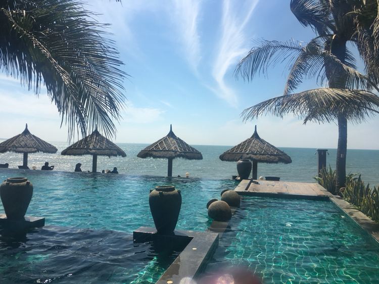 Bamboo Village Beach Resort Mui Ne(美奈竹村海滩度假酒店),环境清幽,在海岸线上面,位置也不算偏僻,房间灰常干净整洁,沙滩上狠多冲浪的境外人,美奈是一个适合冲浪的地方。酒店外面对面就有租赁摩托车的地方,非常方便。酒店外面还有一家卖冲浪衣服的商店,质量特别好。下...显示全部