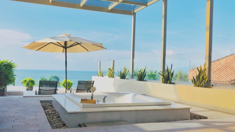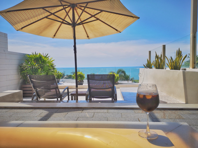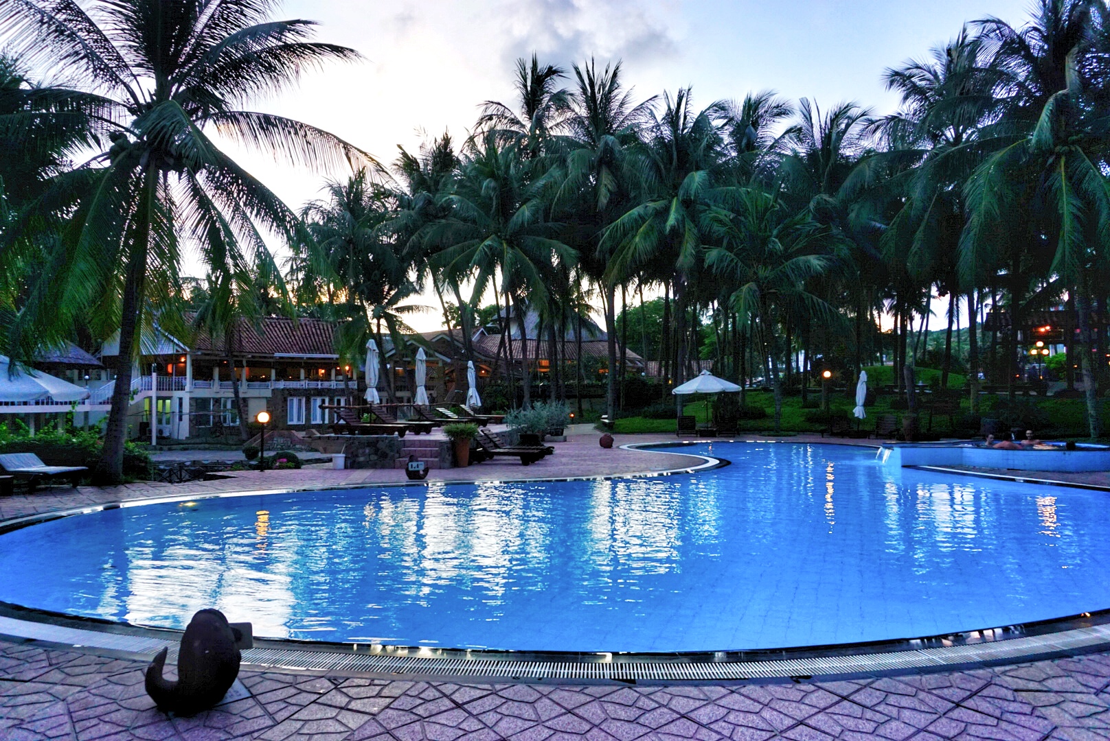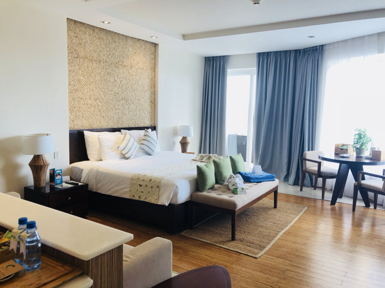 的时候住在Joe's Cafe and Garden Resort,也叫乔的咖啡馆和花园度假村,自带露天咖啡吧(晚上是酒吧,有歌手驻场)、泳池,临海但不带沙滩,当时促销大床房84人民币一晚拿下,不促销的时候大概100多到200人民币,不过据说现在也涨价了。这也是我旅行多年下来订过性价比最高体验感最好的酒店,没有之一。