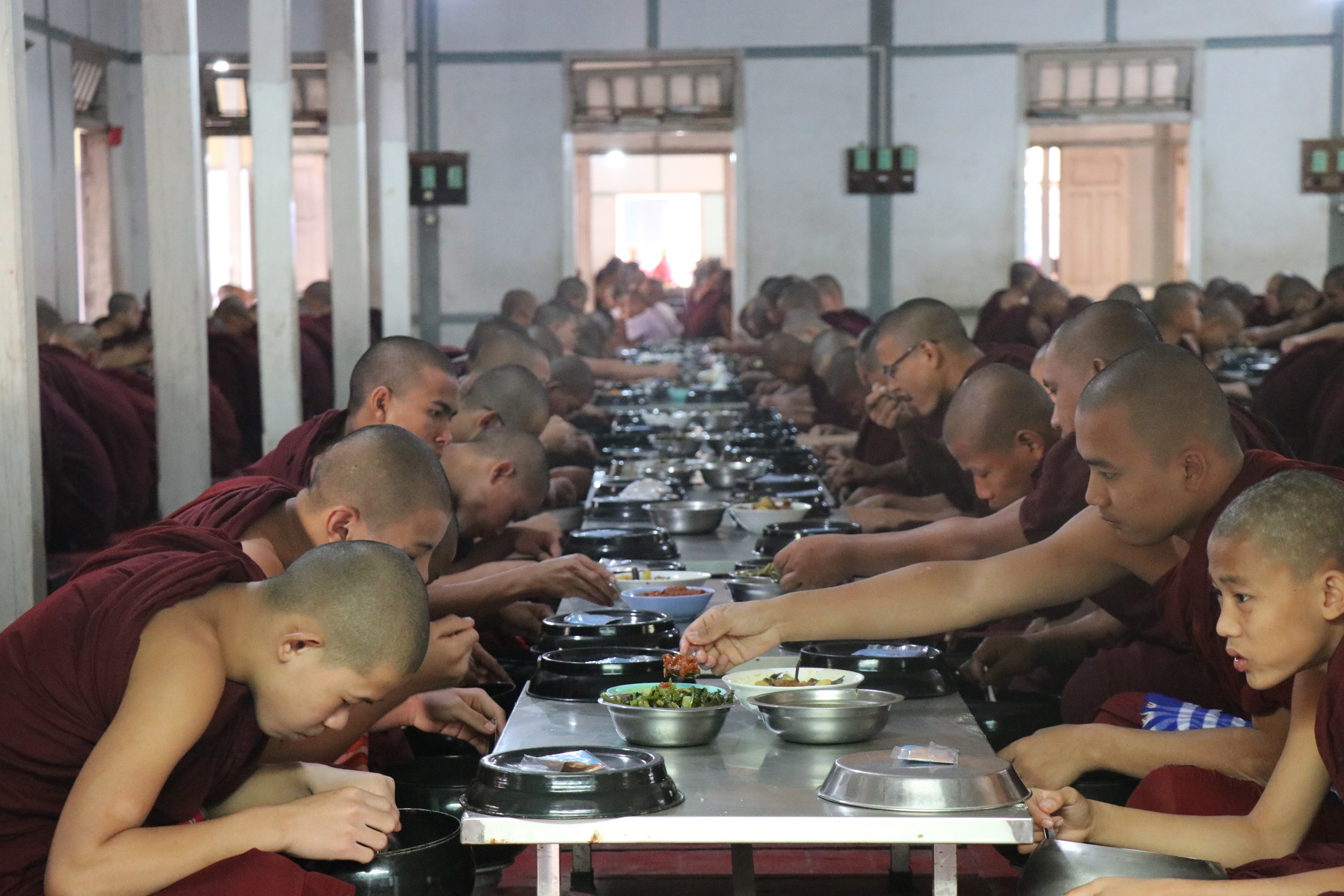 该建筑是1822年贡由榜王朝国王孟既的王后Nanmadaw Me Nu为国师Nyaung Gan Sayadaw高僧所建造的住所。在1838年的大地震中曾遭到破坏,之后被Me Nu王后的女儿、敏东王的王后Sinphyumashin在1873年修复。整个寺院建筑的构造是模仿柚木僧院、有七层结构的特点,用石头和砖块建造,形制应该算经堂。这座寺院是19世纪贡榜王朝的建筑代表作,也是小地球将会带各位宇航员抵达之地。