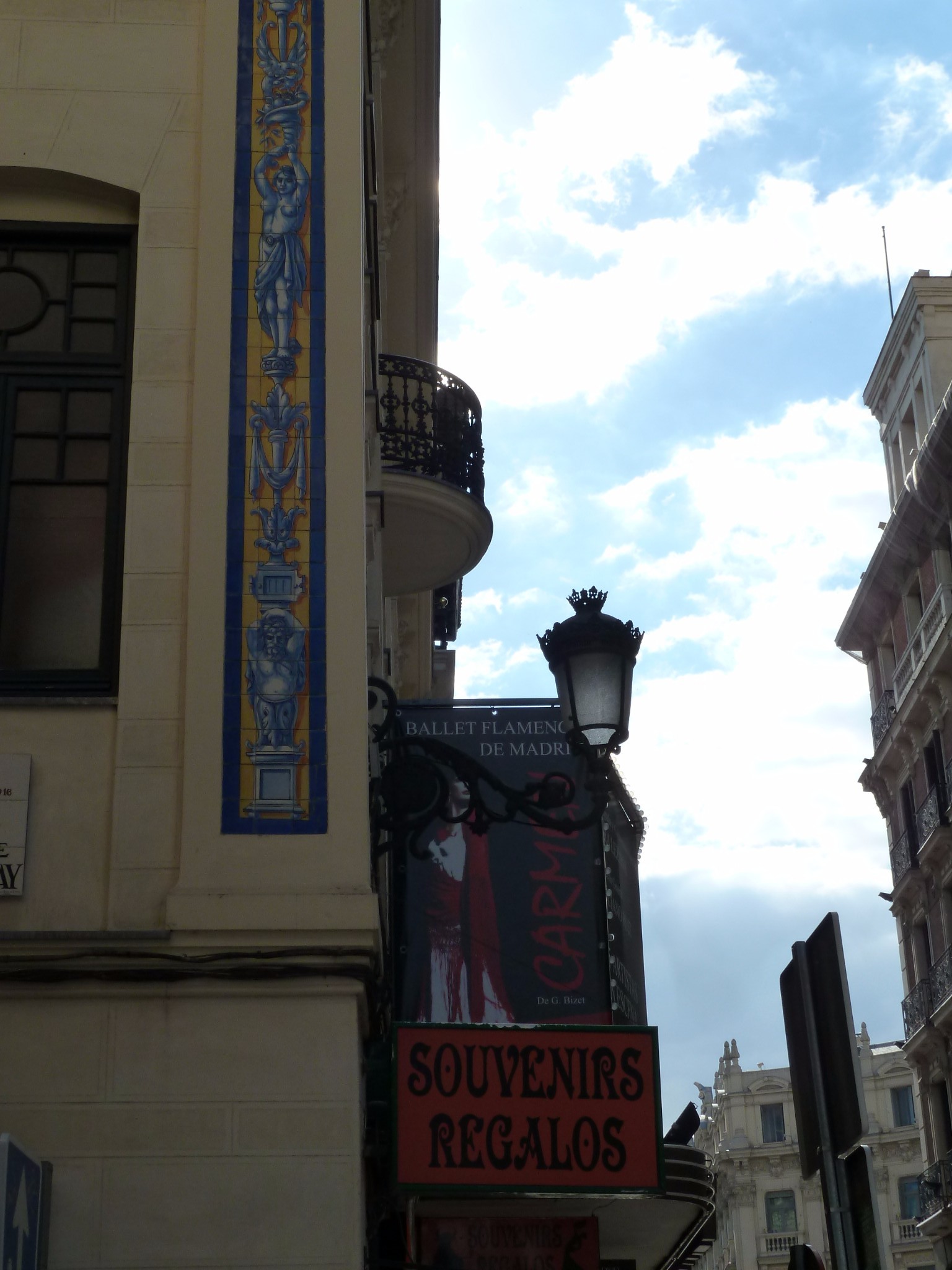 瓷砖拼就的小装饰画 铁艺街灯 大幅的弗拉明戈舞广告招贴